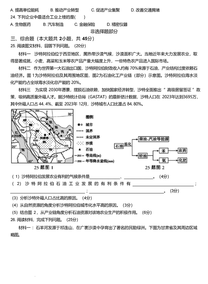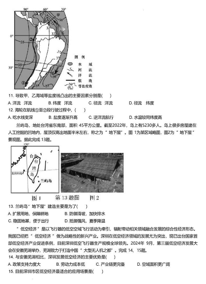 杭州北斗联盟2024-2025学年高一下4月期中联考地理试题及答案