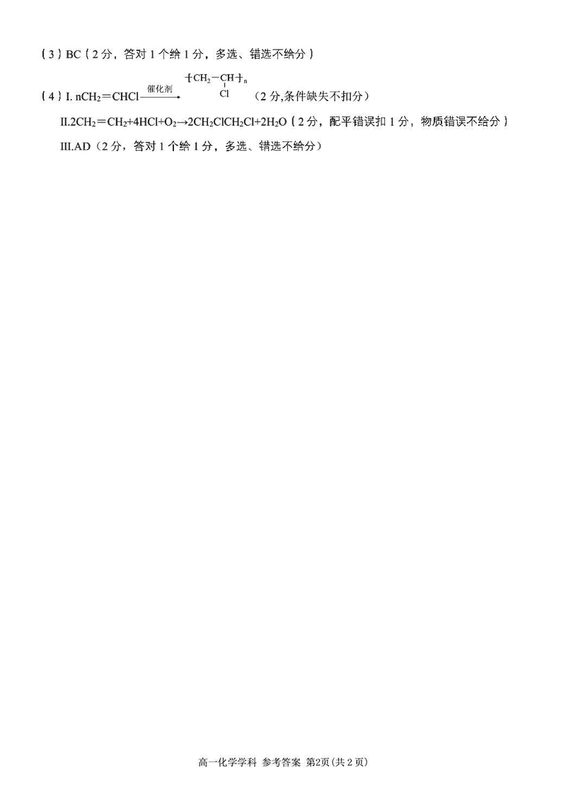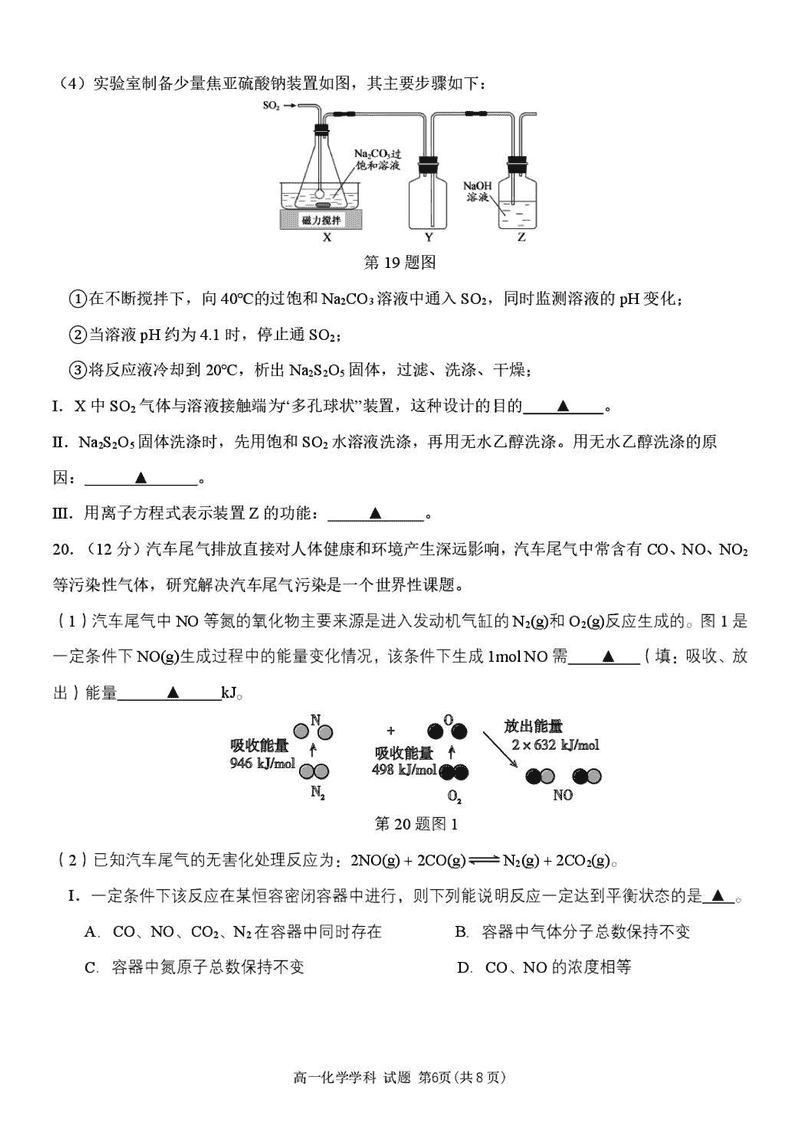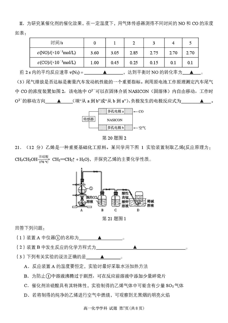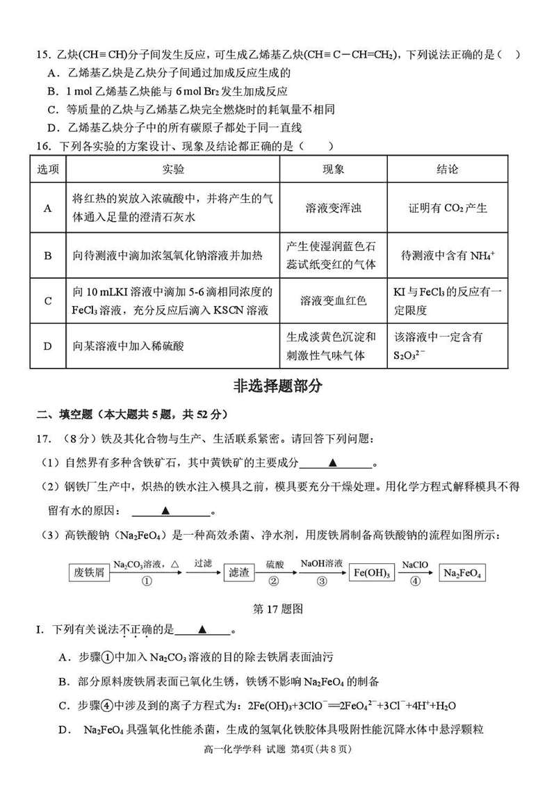 杭州北斗联盟2024-2025学年高一下4月期中联考化学试题及答案