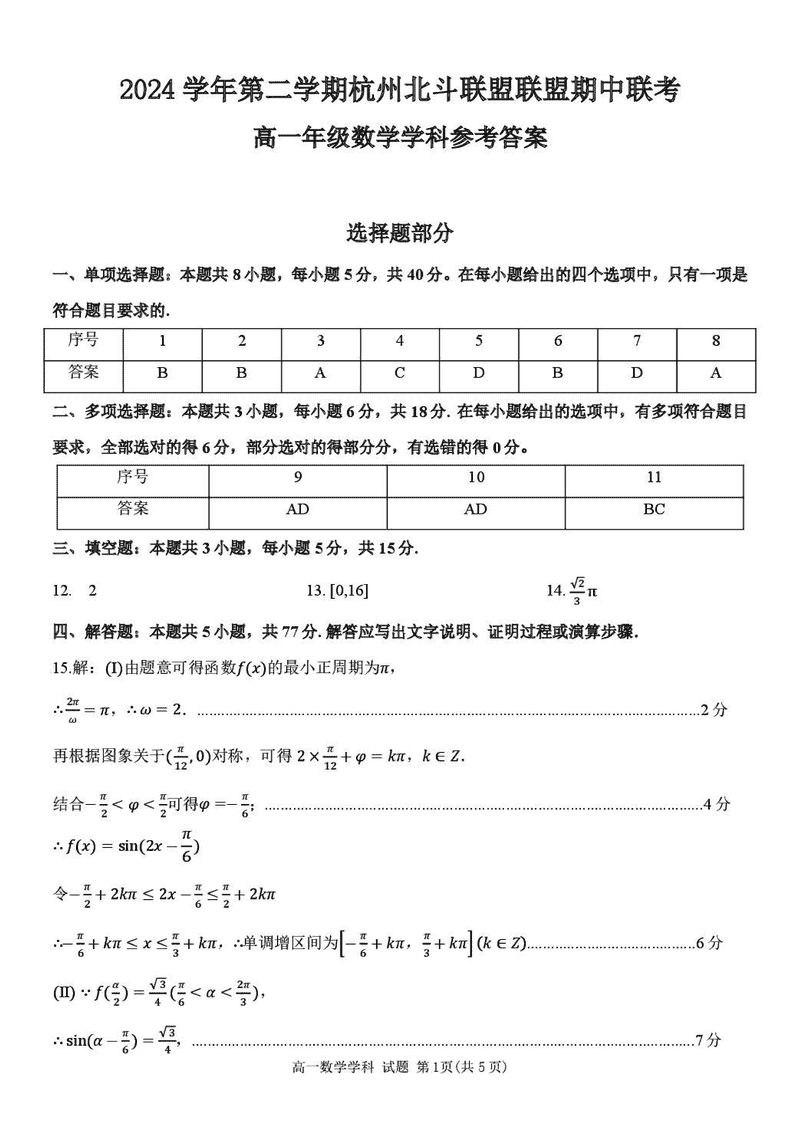 浙江省杭州市北斗联盟2024-2025学年高一下学期4月期中联考数学考试已于近日开考,为方便考生考后及时查看考试情况,查漏补缺、弥补不足,本文整理了试题答案解析相关信息!