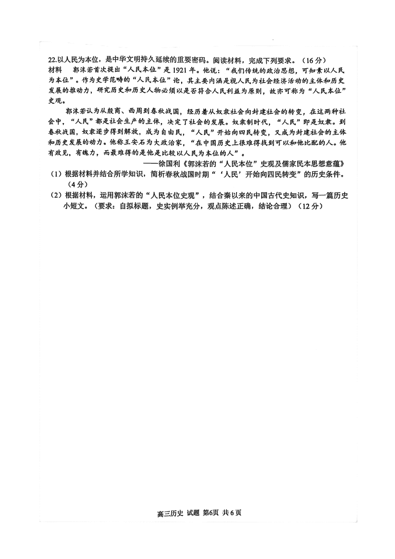 历史试题及答案解析