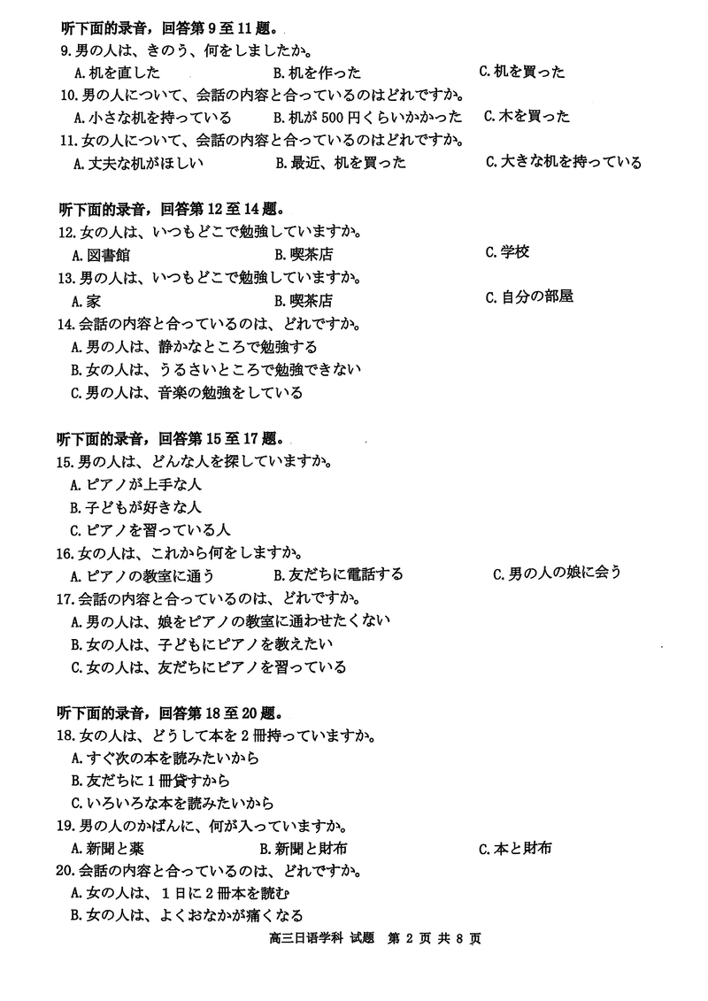 浙江精诚联盟2025高三5月适应性联考日语试题及答案