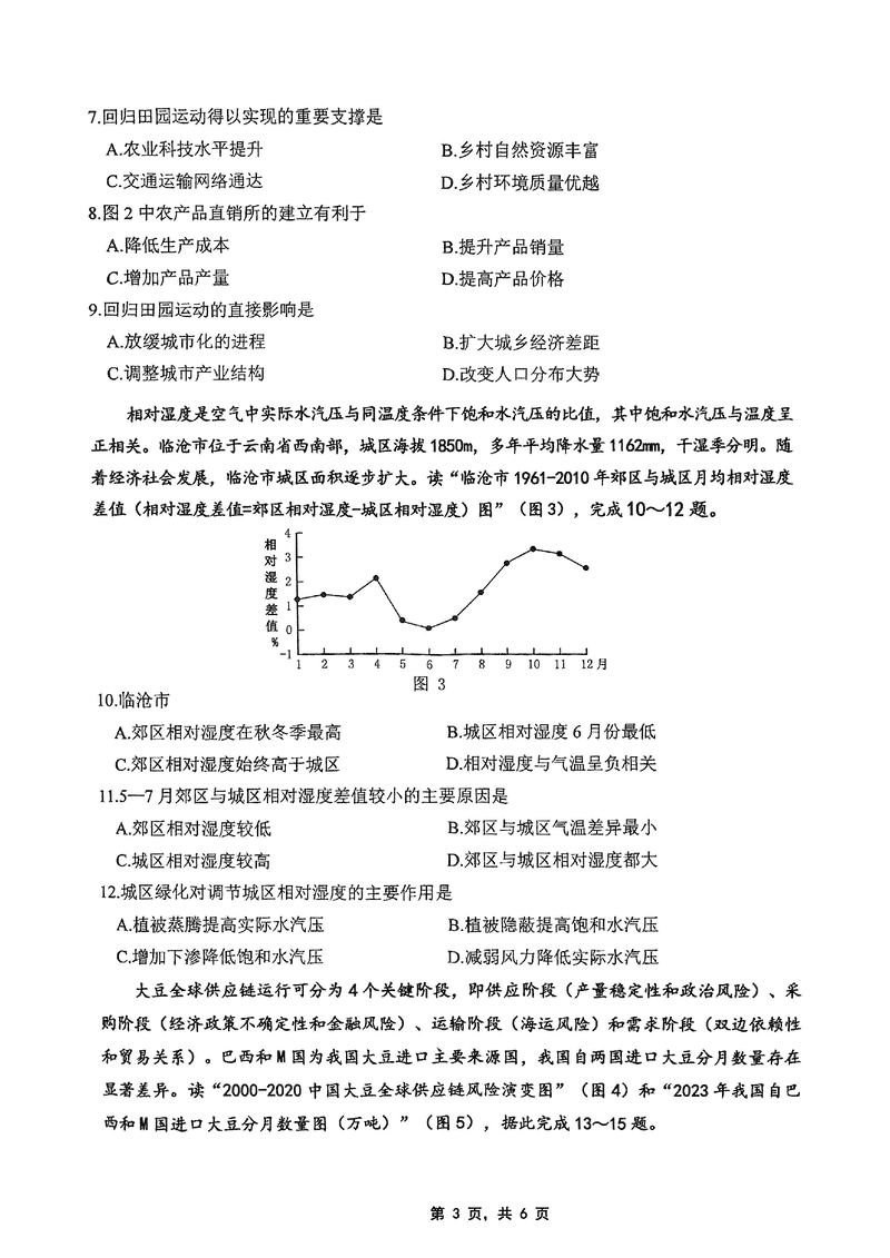 重庆市高2025届学业质量调研抽测(第三次)地理试题及答案