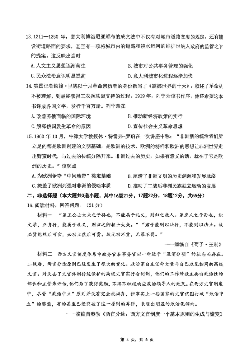 重庆市高2025届学业质量调研抽测(第三次)历史试题及答案