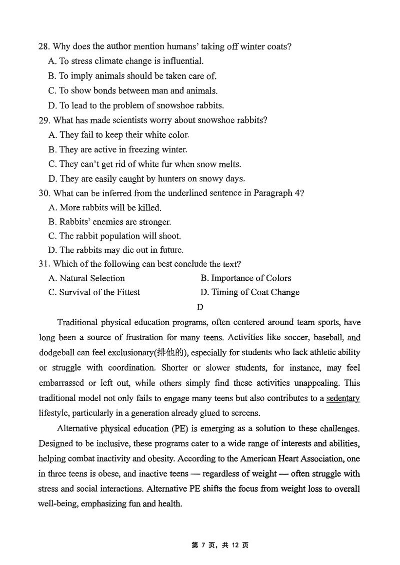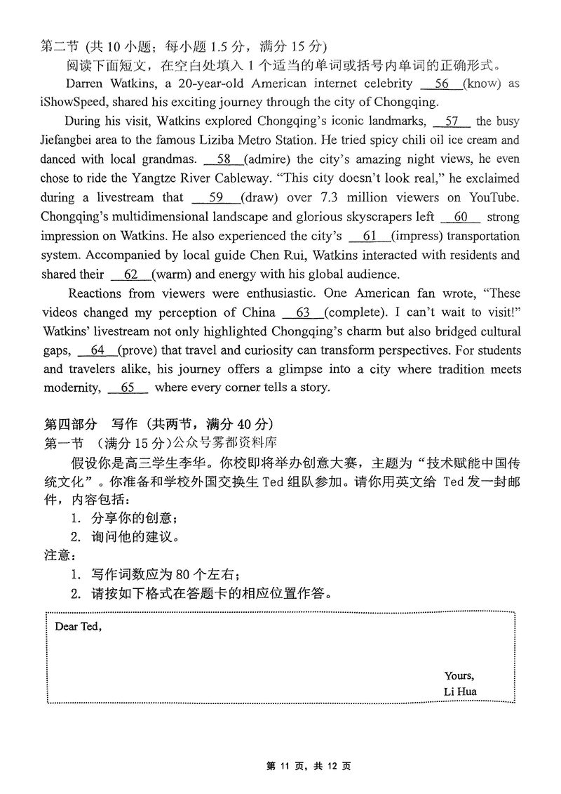 重庆 英语试题