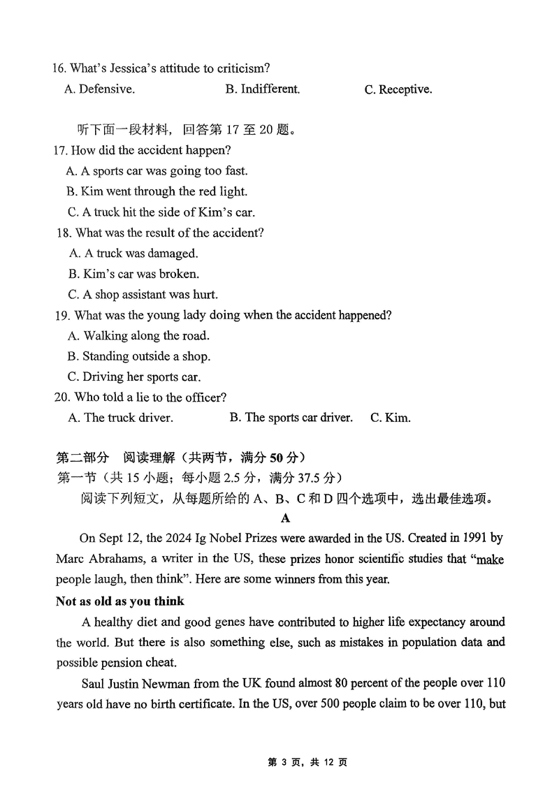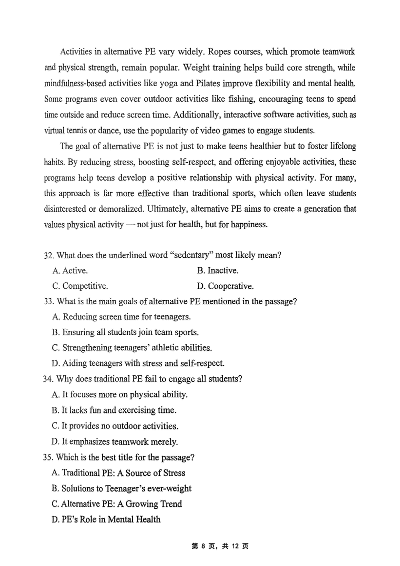 重庆市高2025届学业质量调研抽测(第三次)(九龙坡三诊)英语考试已于近日开考,为方便考生考后及时查看考试情况,查漏补缺、弥补不足,本文整理了试题答案解析相关信息!
