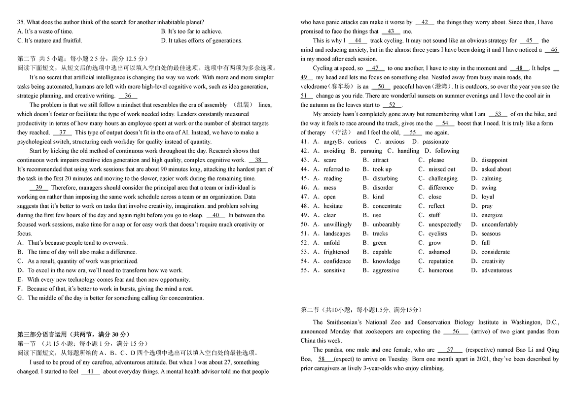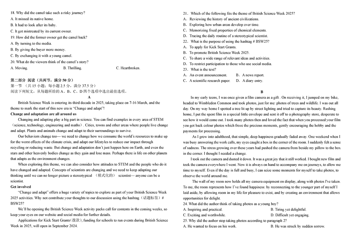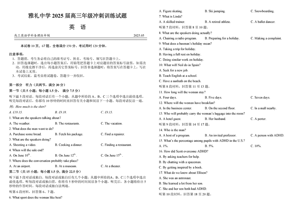 湖南雅礼中学2025届高三下学期冲刺训练英语试题及答案
