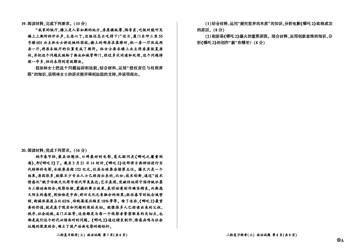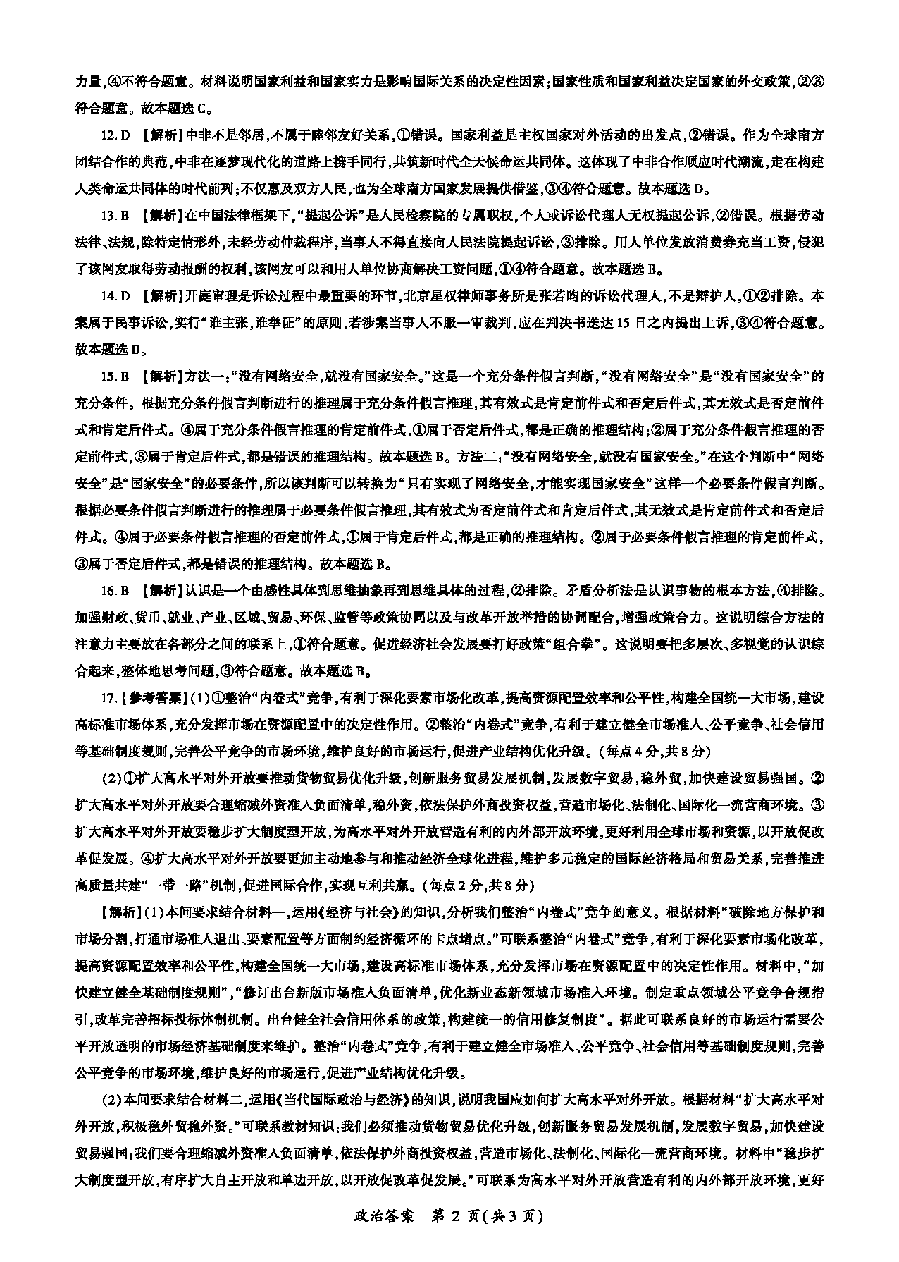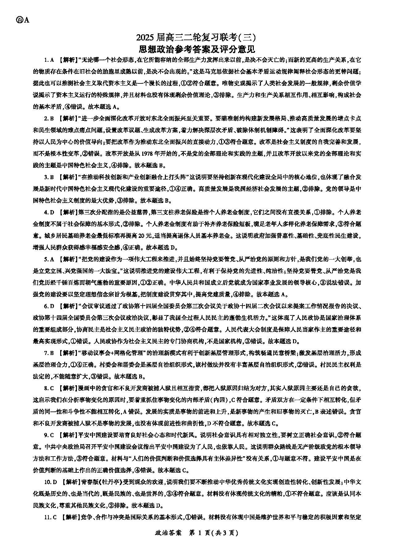 安徽百师联盟2025届高三二轮复习联考(三)政治试题及答案