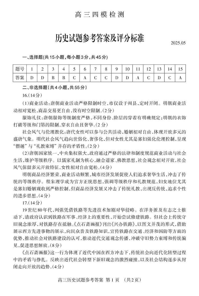 2025届山东泰安高三四模历史试题及答案 时间:2025-05-20 山东 文综试题 2025届山东省泰安高三四模历史考试已于近日开考,为方便考生考后及时查看考试情况,查漏补缺、弥补不足,本文整理了试题答案解析相关信息! 汇总:2025届山东省泰安高三四模检测试题及答案汇总 历史试题及答案解析
