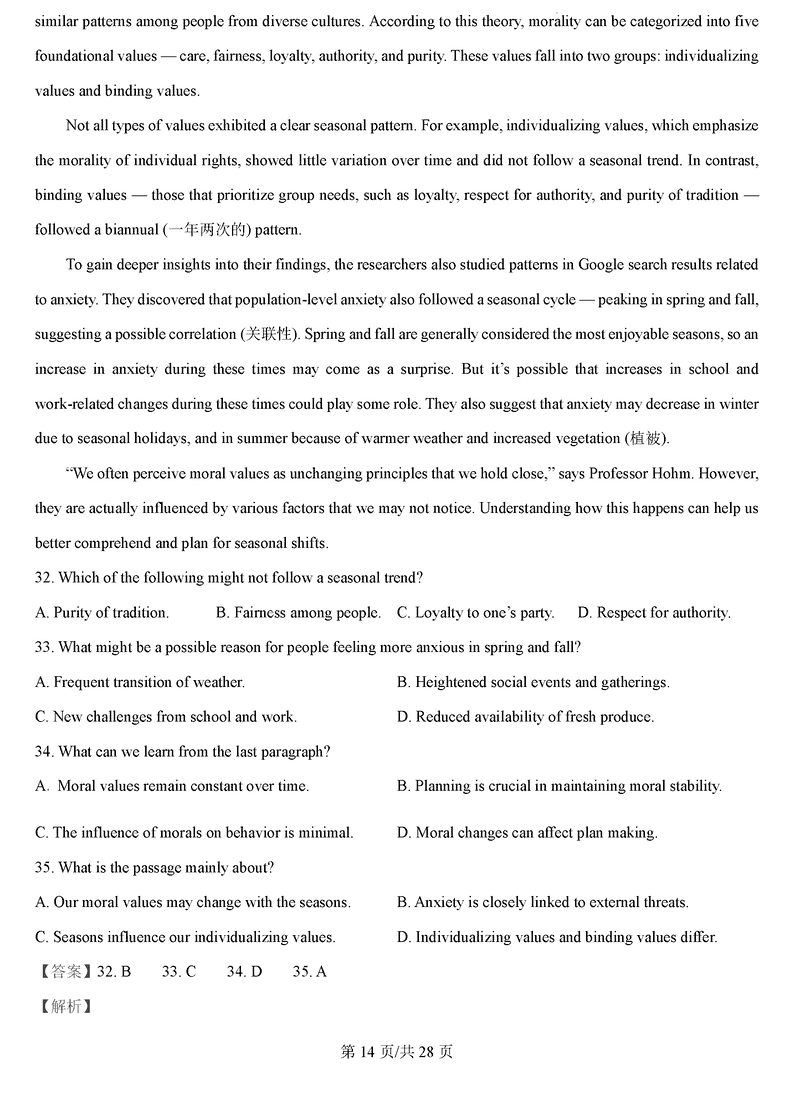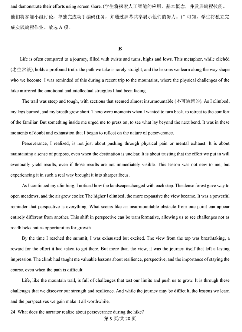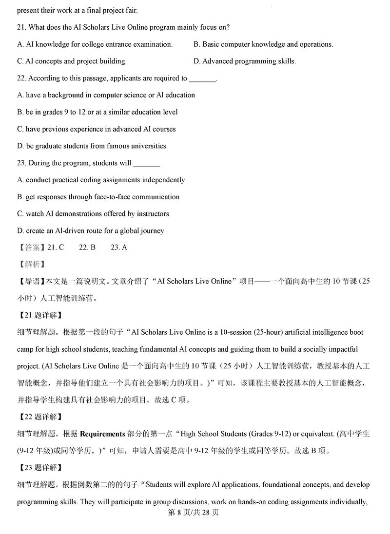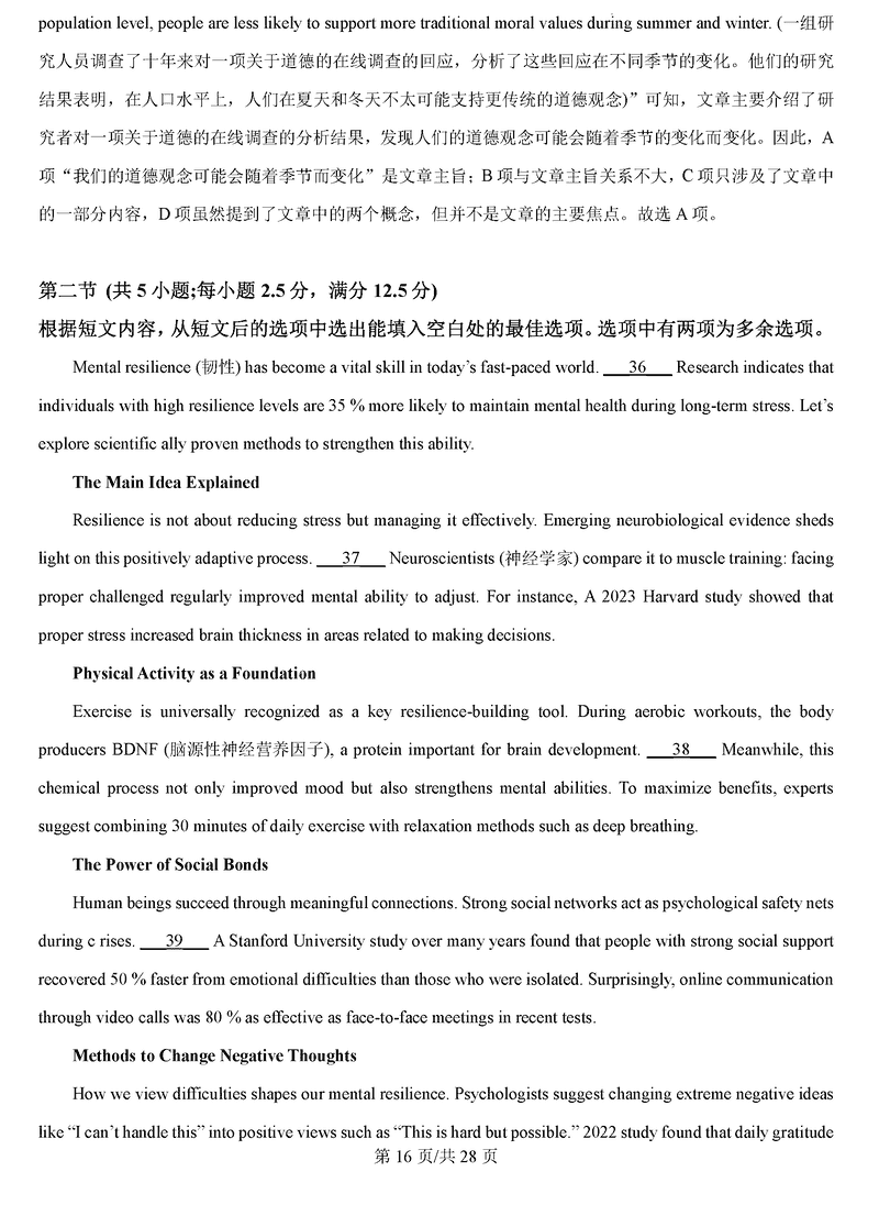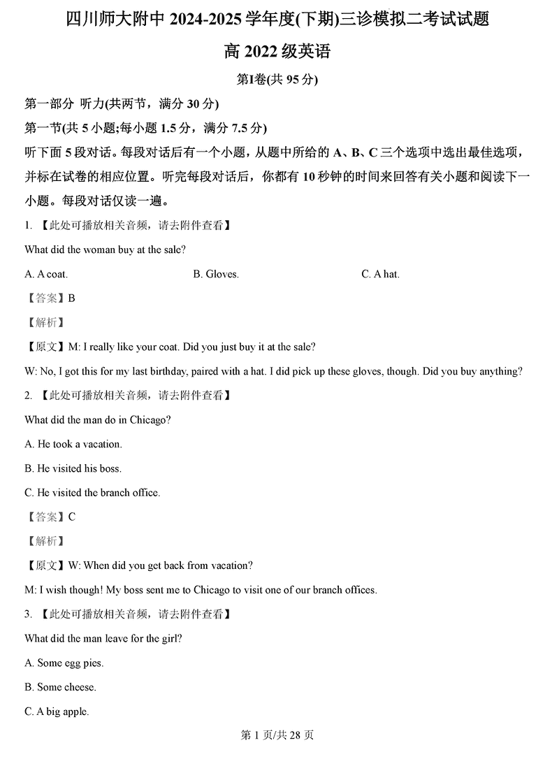 四川师大附中2025届高三下学期三诊模拟二英语考试已于近日开考,为方便考生考后及时查看考试情况,查漏补缺、弥补不足,本文整理了试题答案解析相关信息!