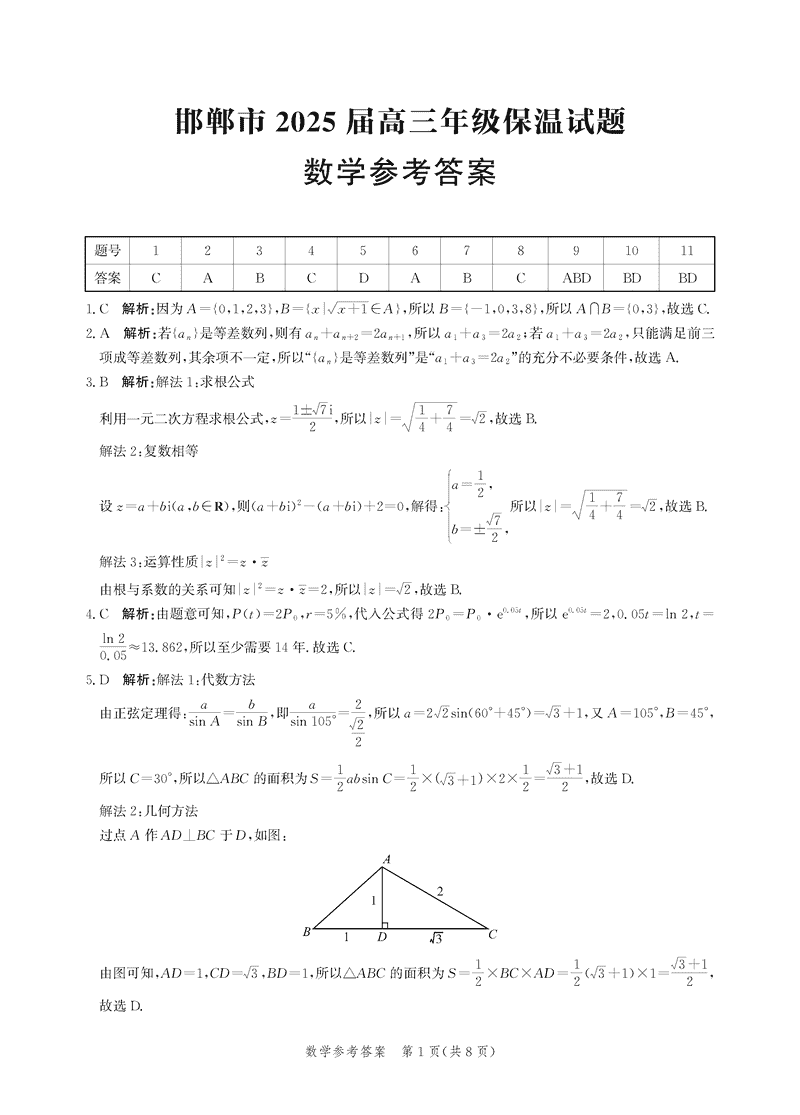 2025届河北省邯郸市高三保温数学试题及答案 时间:2025-05-21 河北 数学试题 2025届河北省邯郸市高三保温数学考试已于近日开考,为方便考生考后及时查看考试情况,查漏补缺、弥补不足,本文整理了试题答案解析相关信息! 汇总:2025届河北省邯郸市高三保温考试试题及答案汇总 数学试题及答案解析