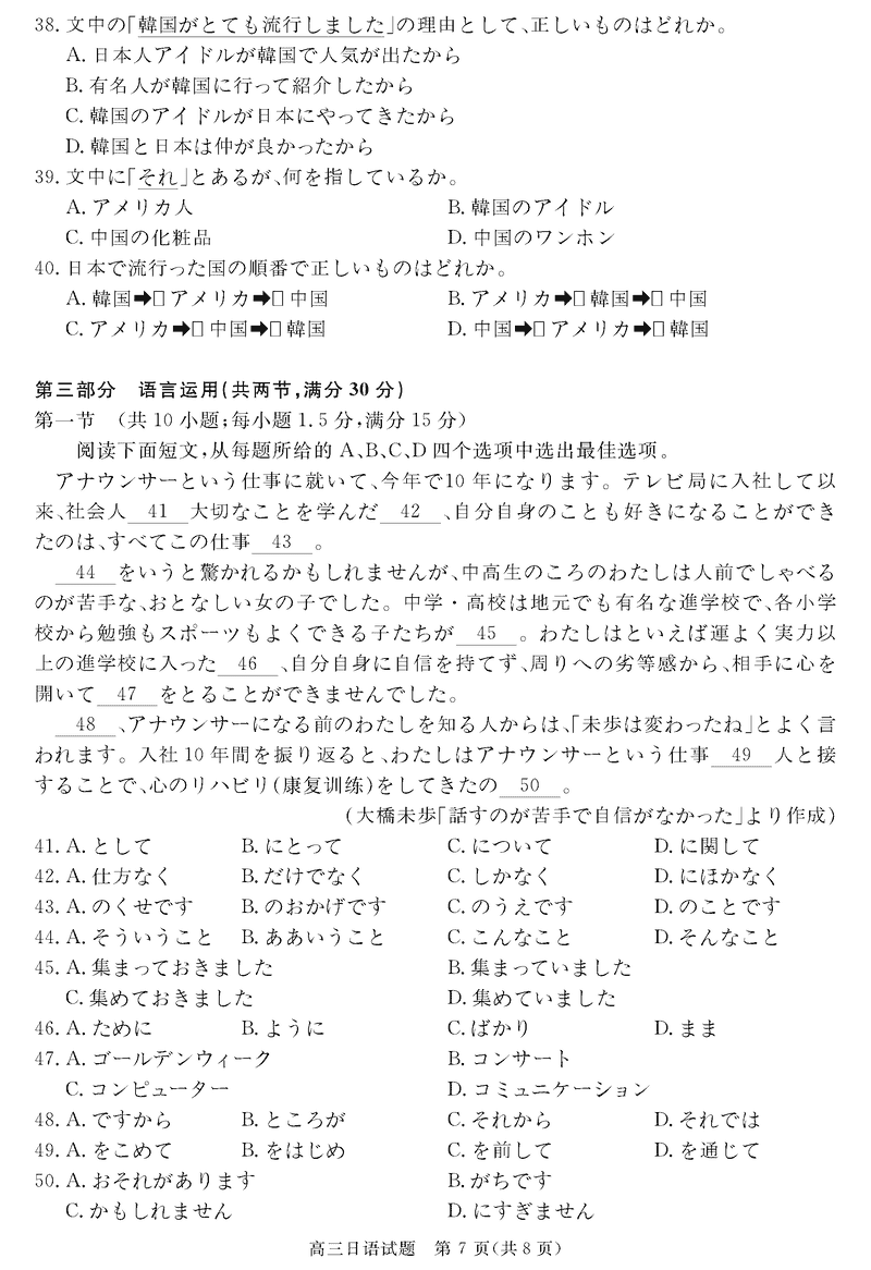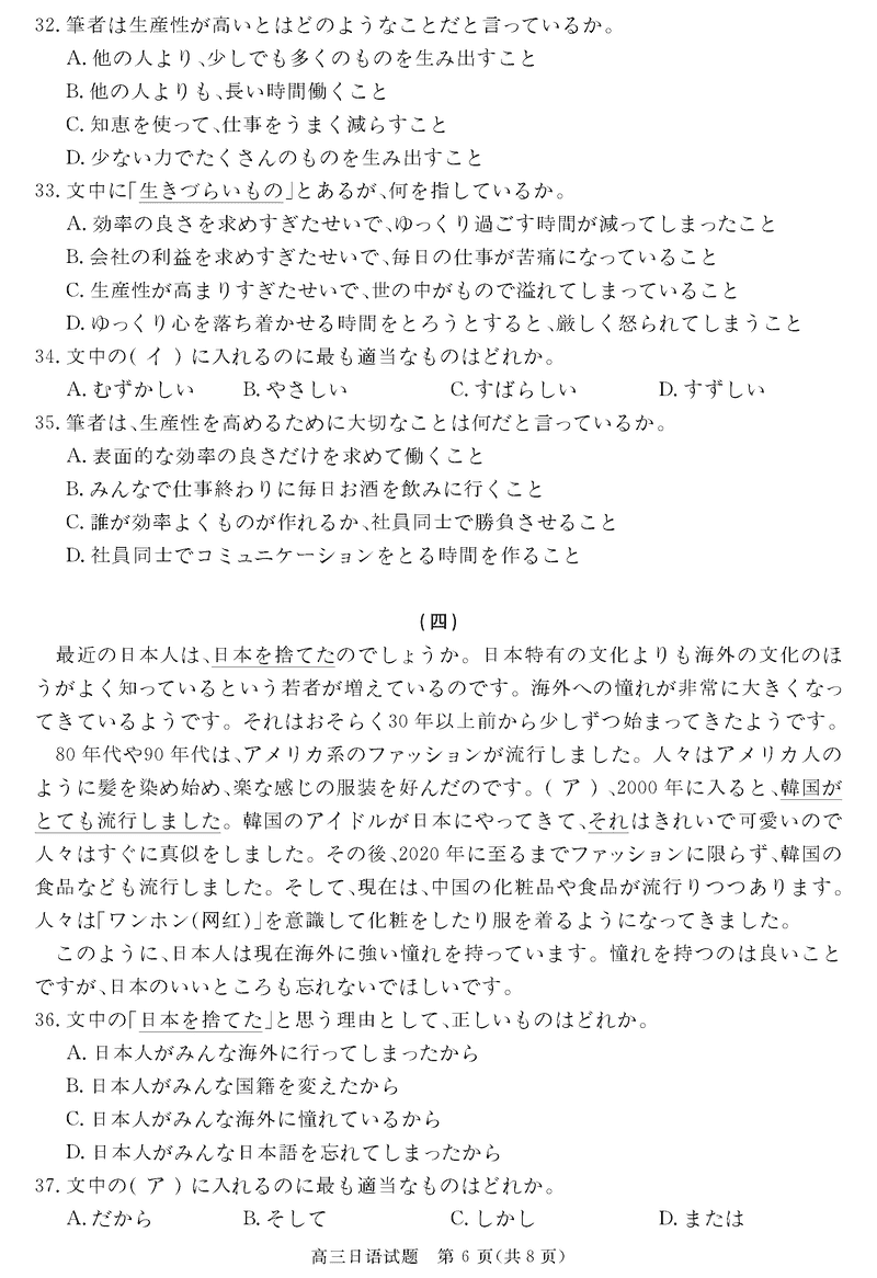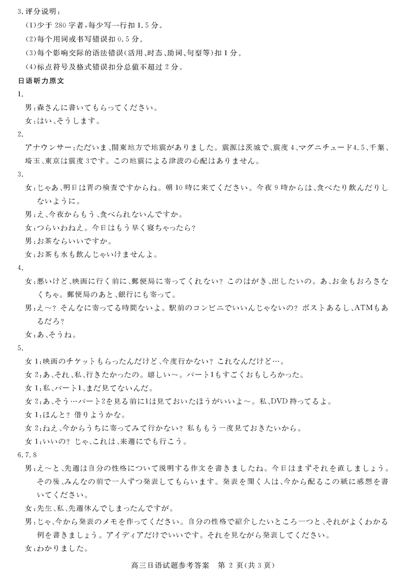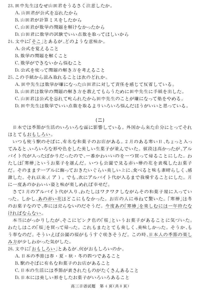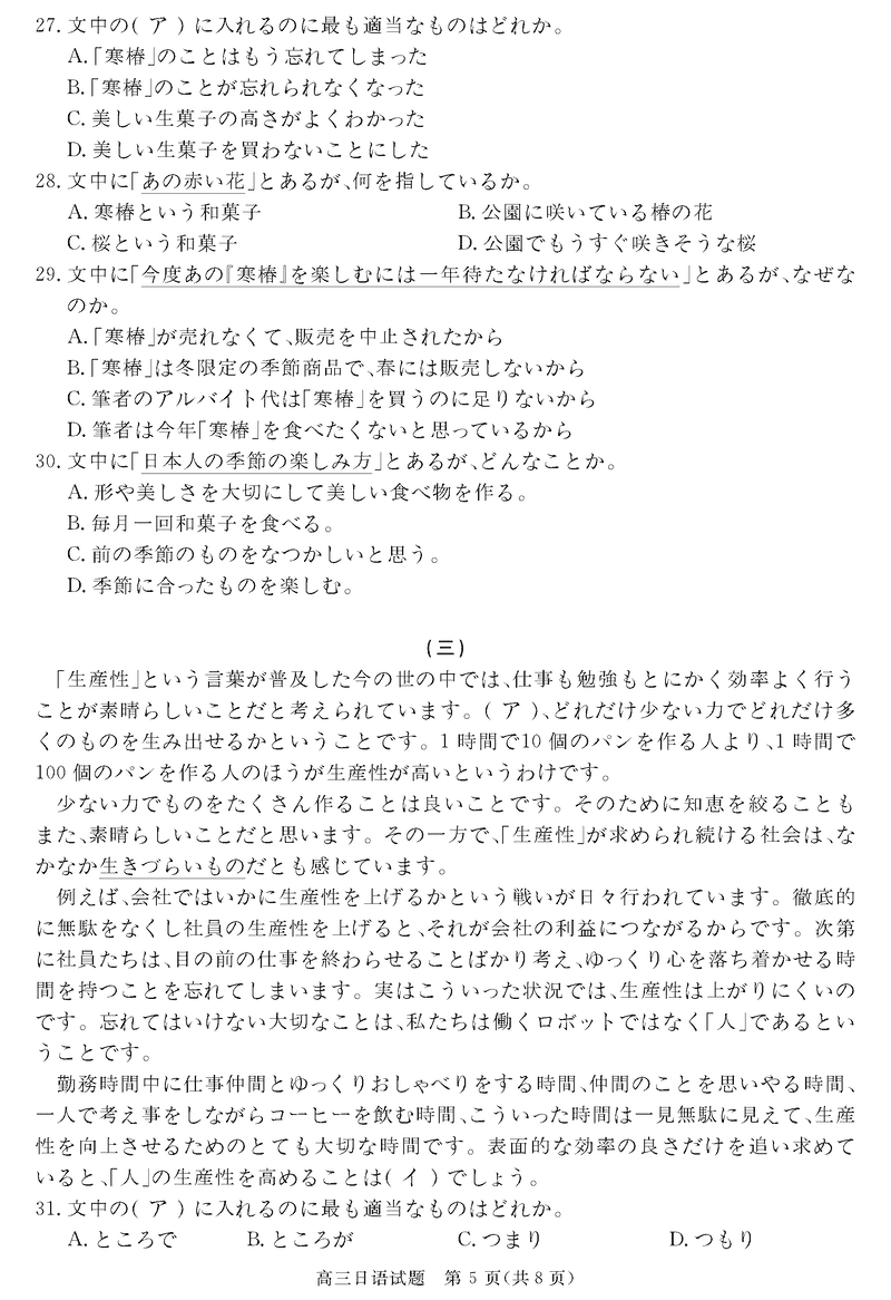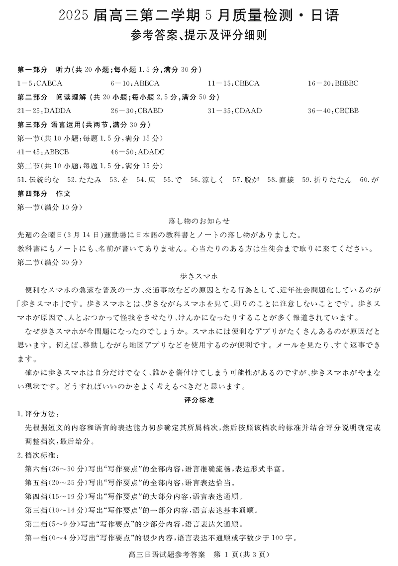 安徽华师联盟2025届高三下5月质检日语试题及答案
