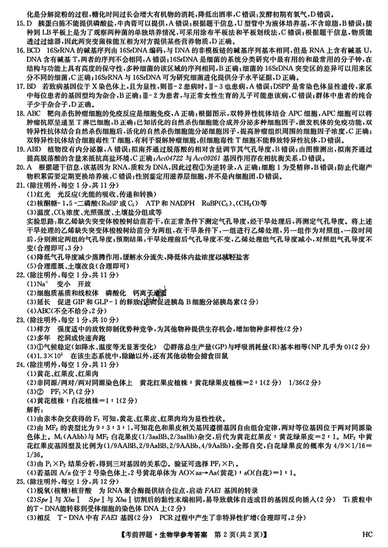 九师联盟2025届高三5月考前押题联考生物试题及答案 时间:2025-05-23 理综试题 九师联盟2025届高三5月考前押题联考生物考试已于近日开考,为方便考生考后及时查看考试情况,查漏补缺、弥补不足,本文整理了试题答案解析相关信息! 汇总:九师联盟2025届高三5月考前押题联考试题及答案汇总 生物试题及答案解析