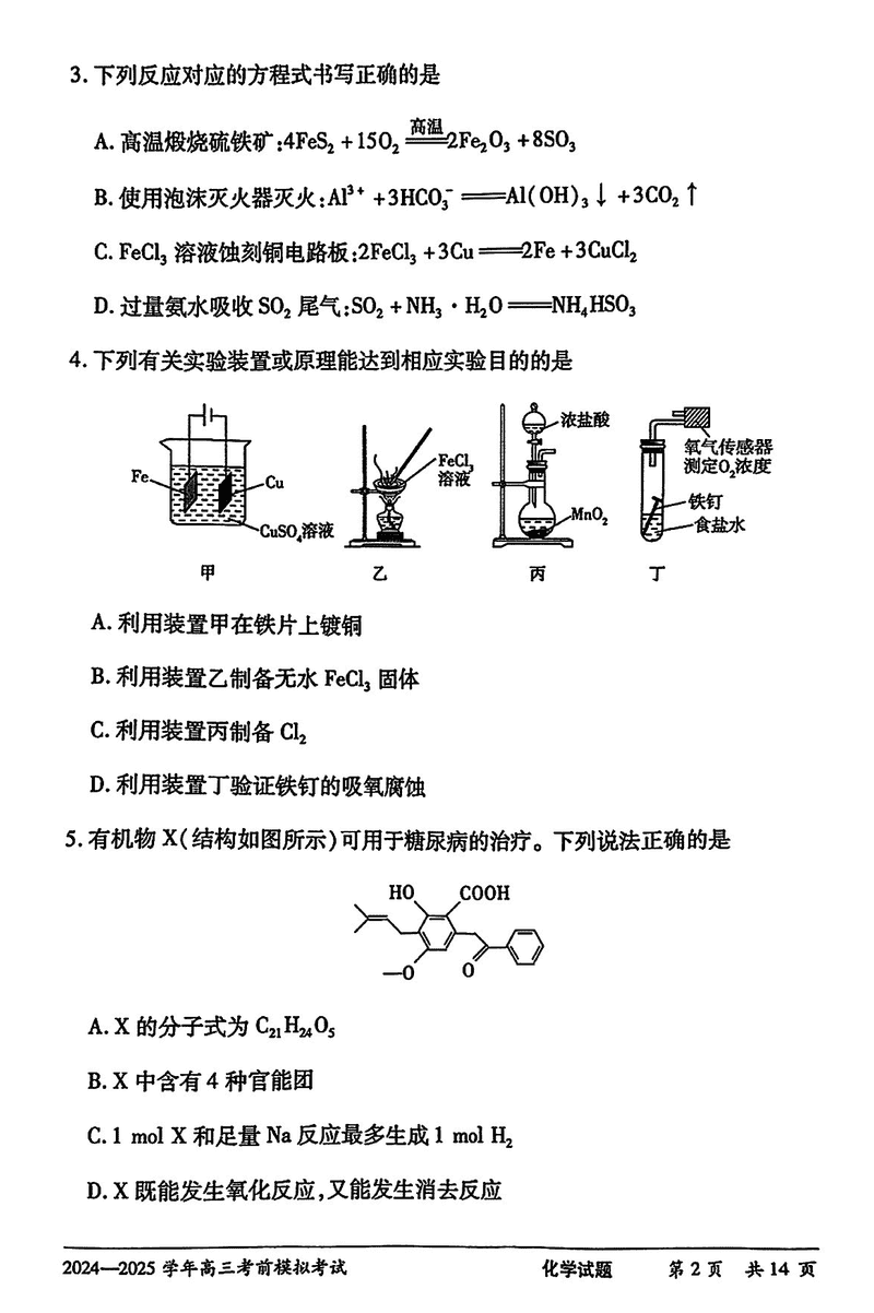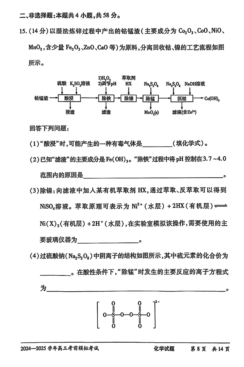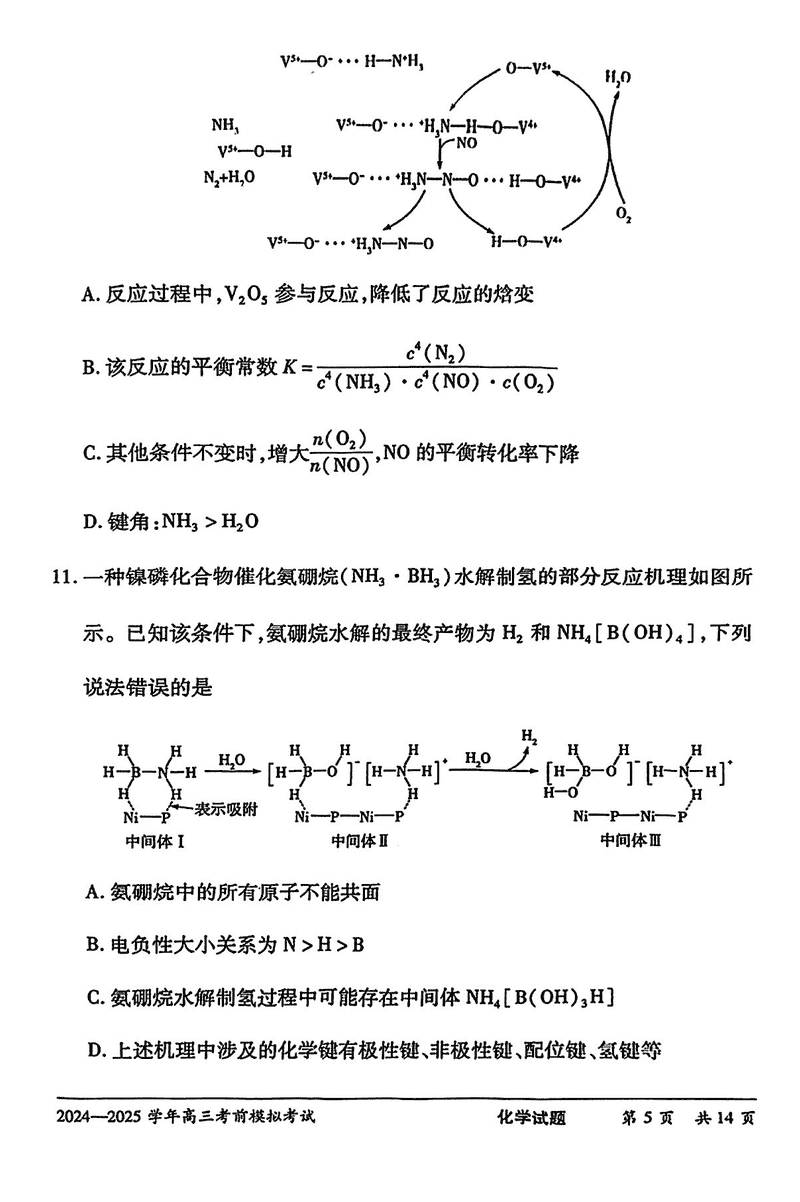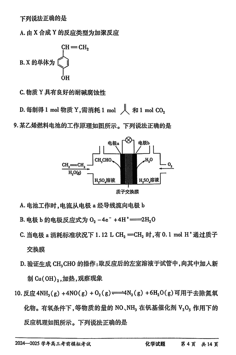 2025届河南省天一大联考高三考前模拟化学试题及答案