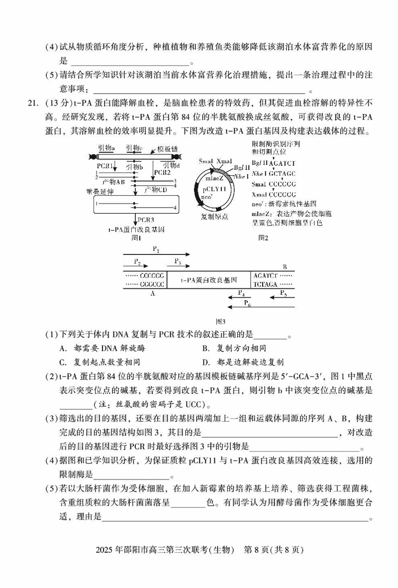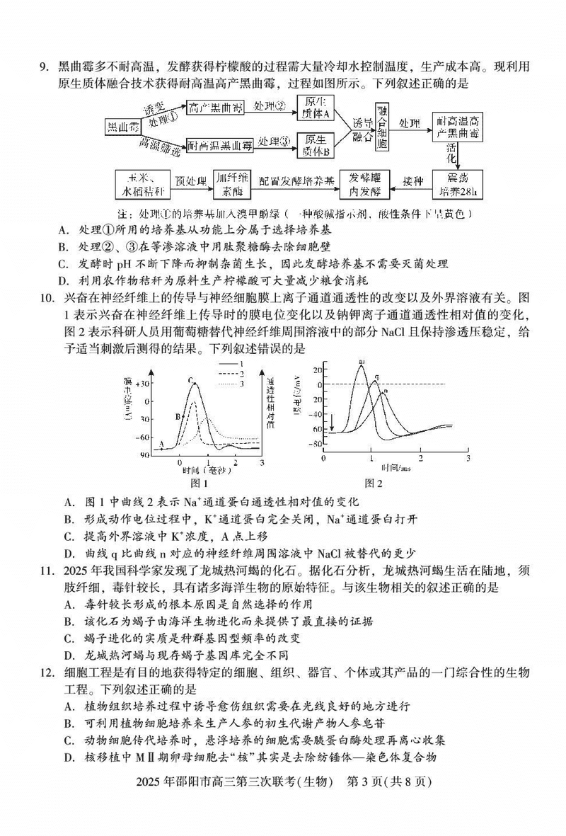 2025年邵阳市高三第三次联考生物试题及答案 时间:2025-05-24 湖南 理综试题 2025年邵阳市高三第三次联考生物考试已于近日开考,为方便考生考后及时查看考试情况,查漏补缺、弥补不足,本文整理了试题答案解析相关信息! 汇总:2025年邵阳市高三第三次联考试题及答案汇总 生物试题及答案解析