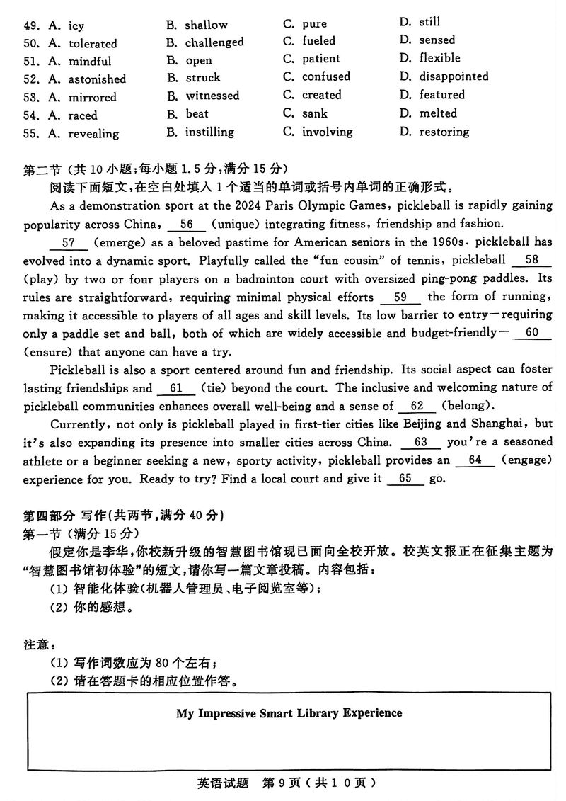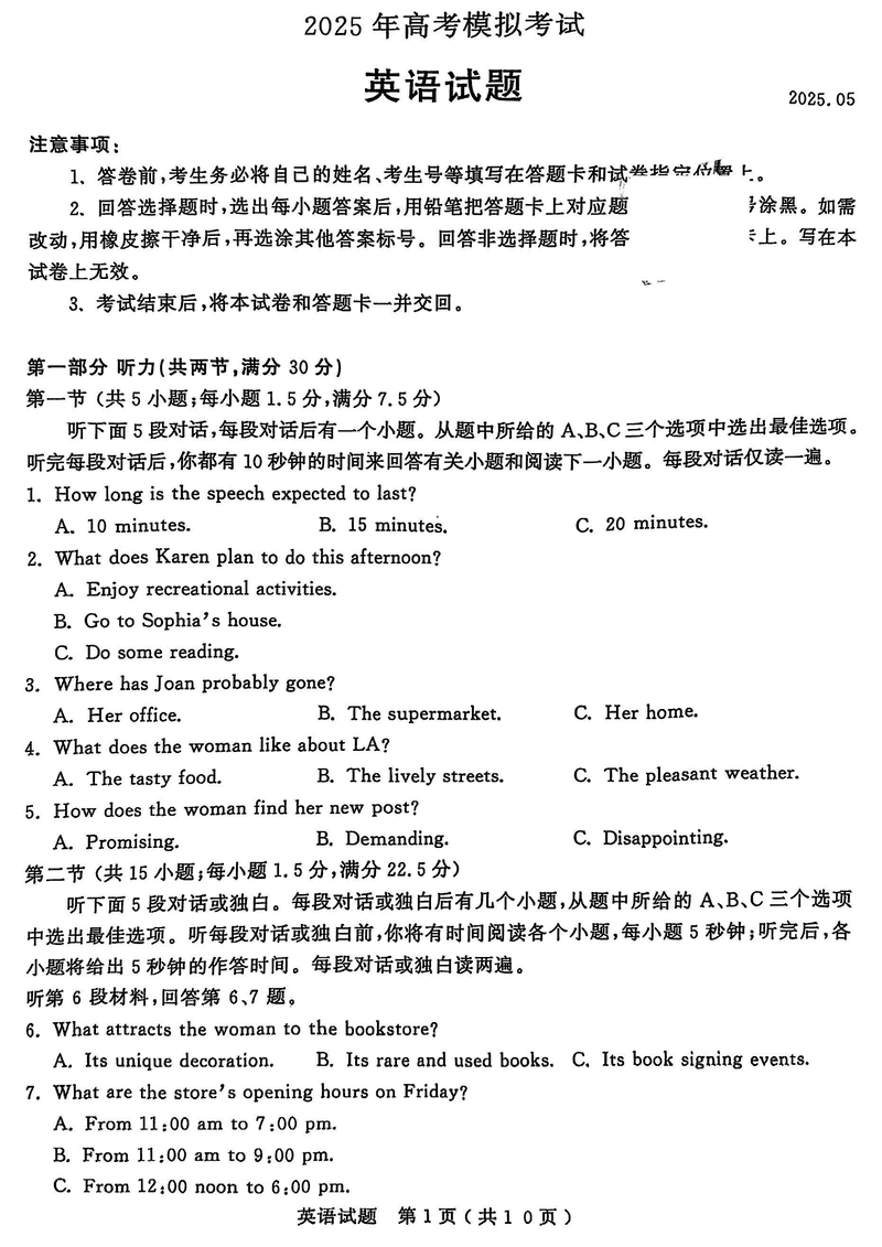 济宁三模2025年高考模拟英语试题及答案 时间:2025-05-24 山东 英语试题 济宁三模2025年高考模拟英语考试已于近日开考,为方便考生考后及时查看考试情况,查漏补缺、弥补不足,本文整理了试题答案解析相关信息! 汇总:济宁三模2025年高考模拟考试试题及答案汇总 英语试题及答案解析