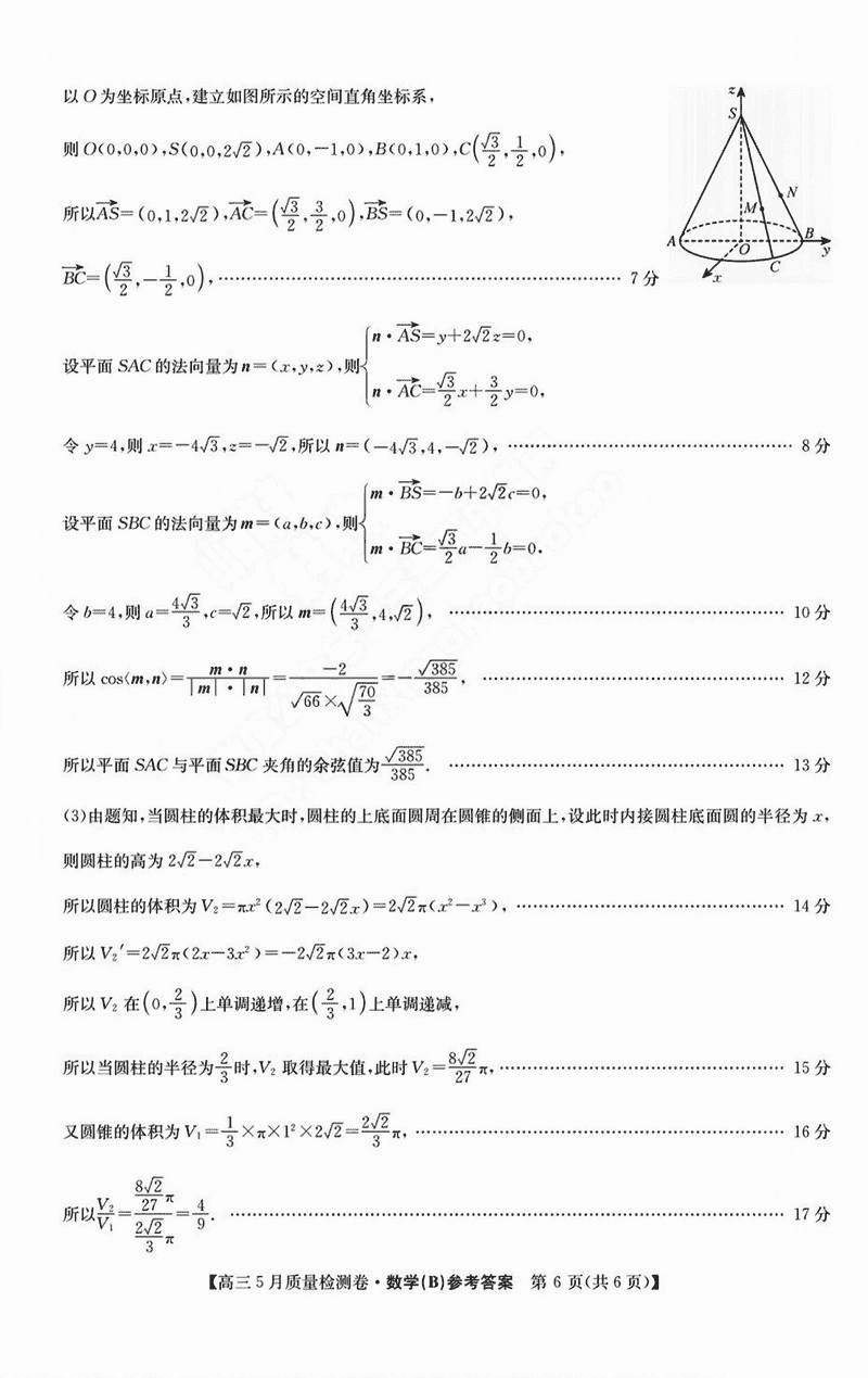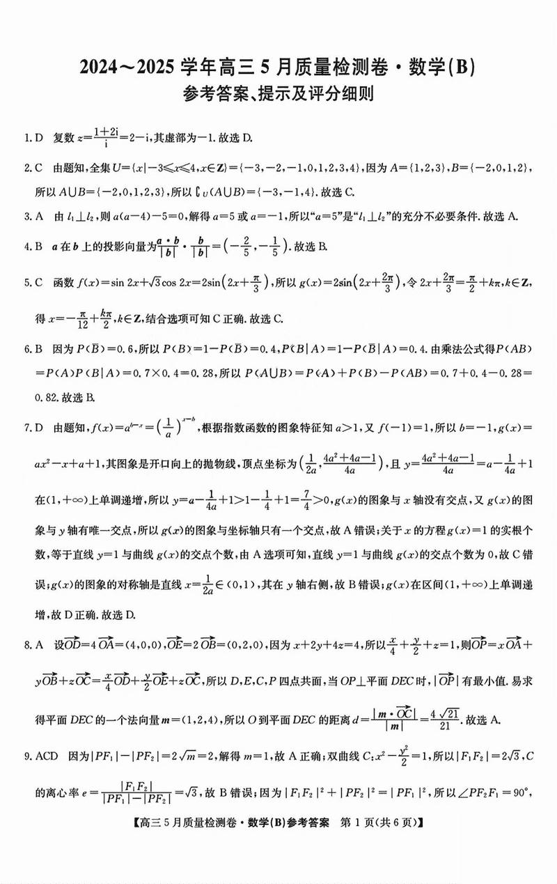 山西三晋卓越联盟2025年高三5月质检数学试题及答案