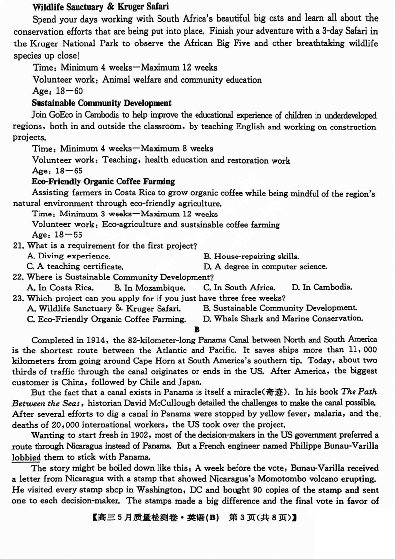 山西三晋卓越联盟2025年高三5月质检英语试题及答案