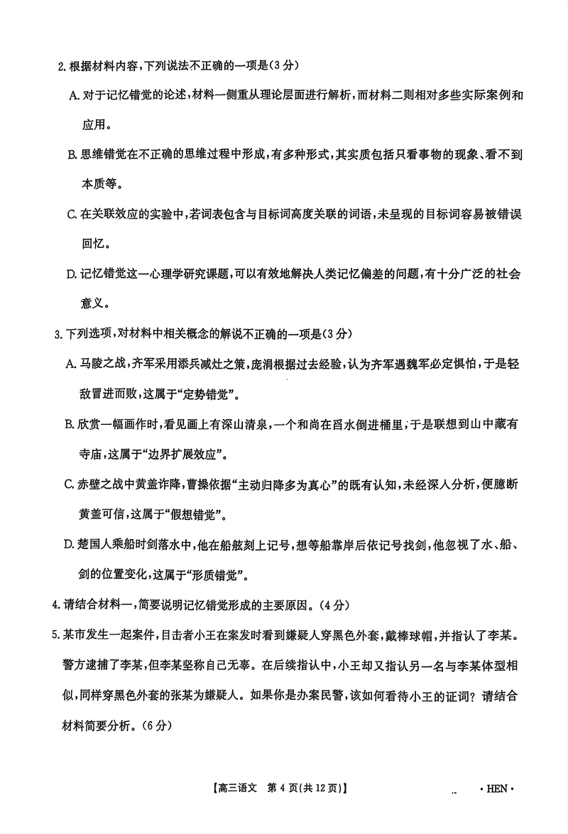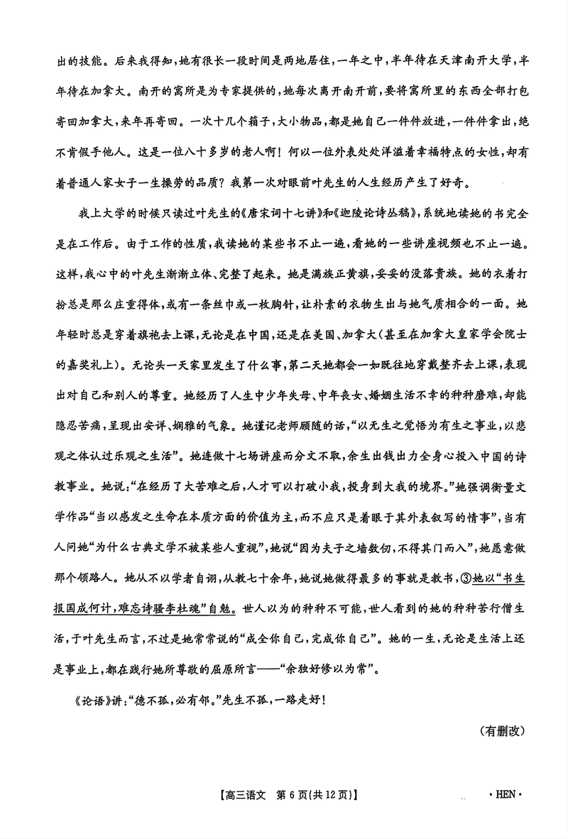 河南创新发展联盟三模2025届高考适应性语文试题及答案