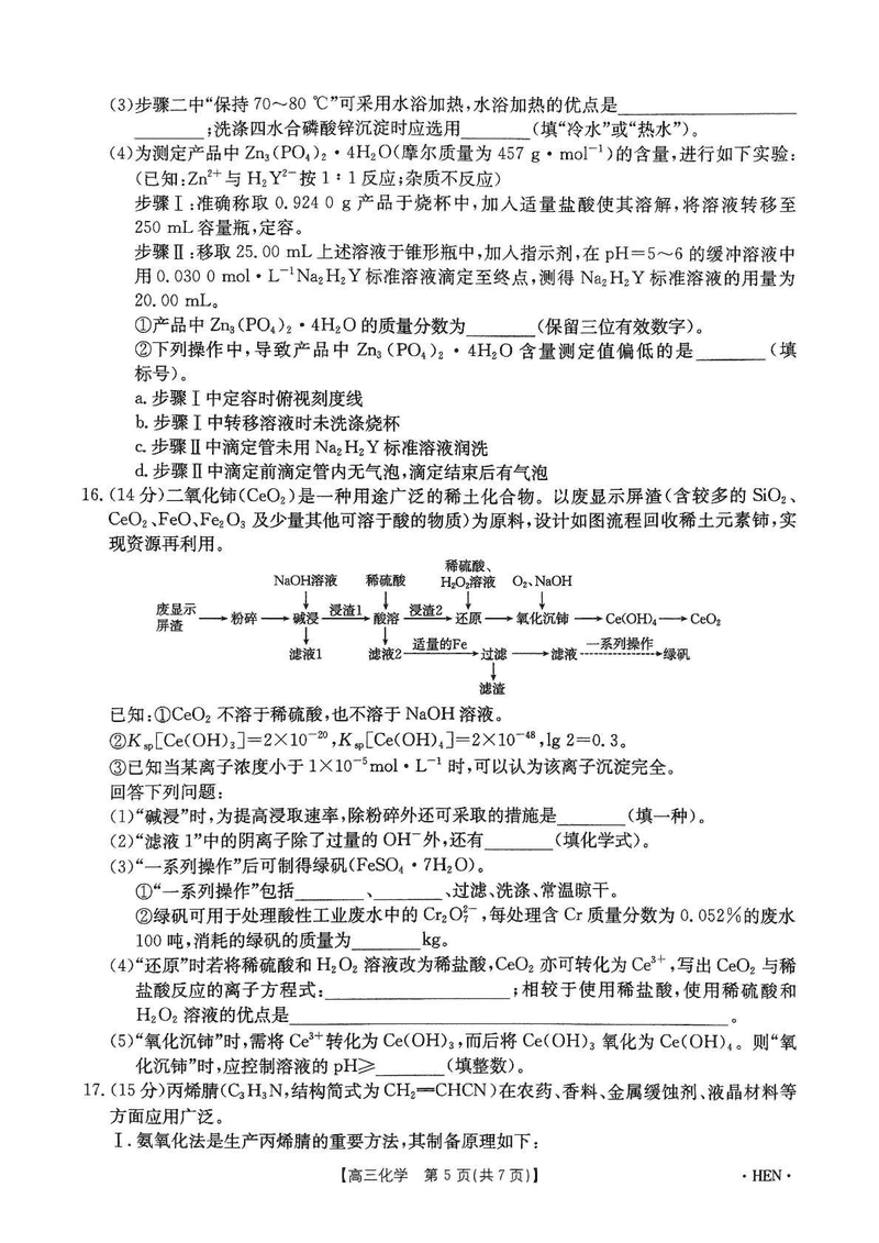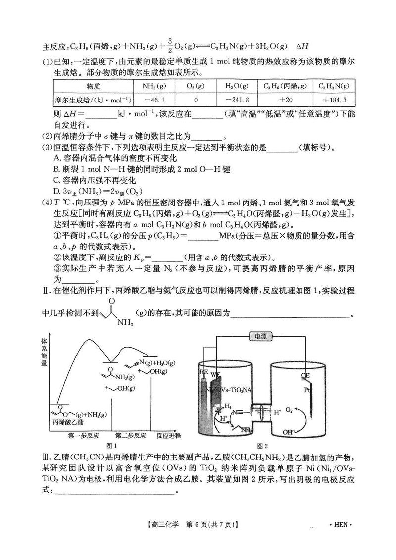河南创新发展联盟三模2025届高考适应性化学试题及答案