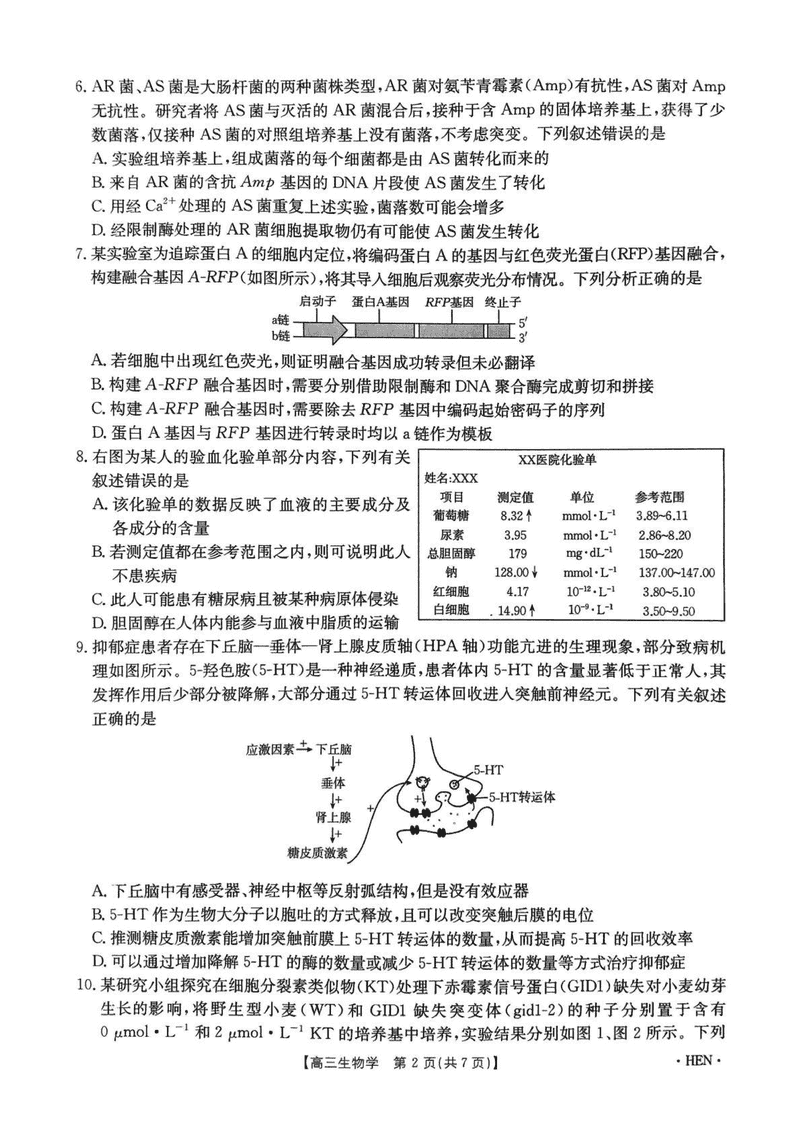 河南创新发展联盟三模2025届高考适应性生物试题及答案