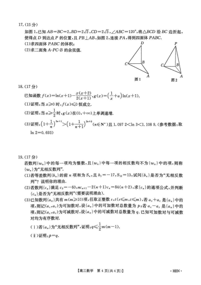 河南创新发展联盟三模2025届高考适应性数学试题及答案