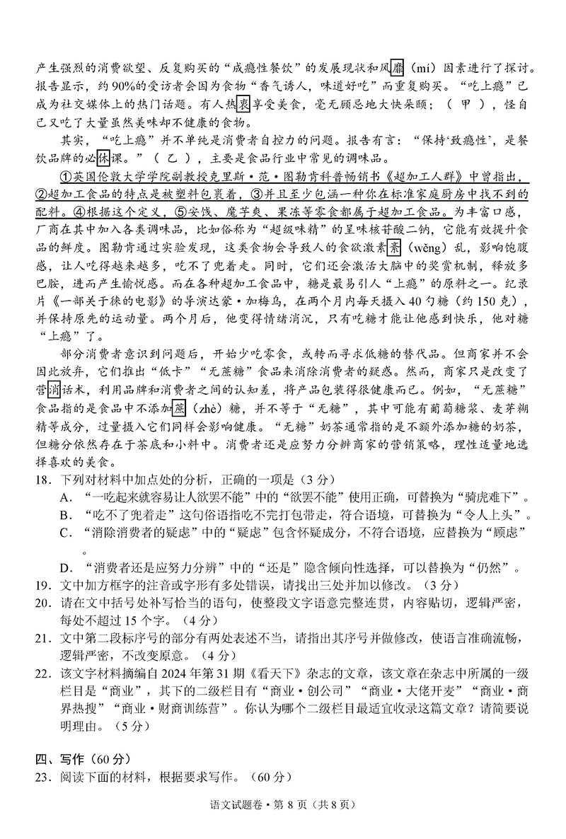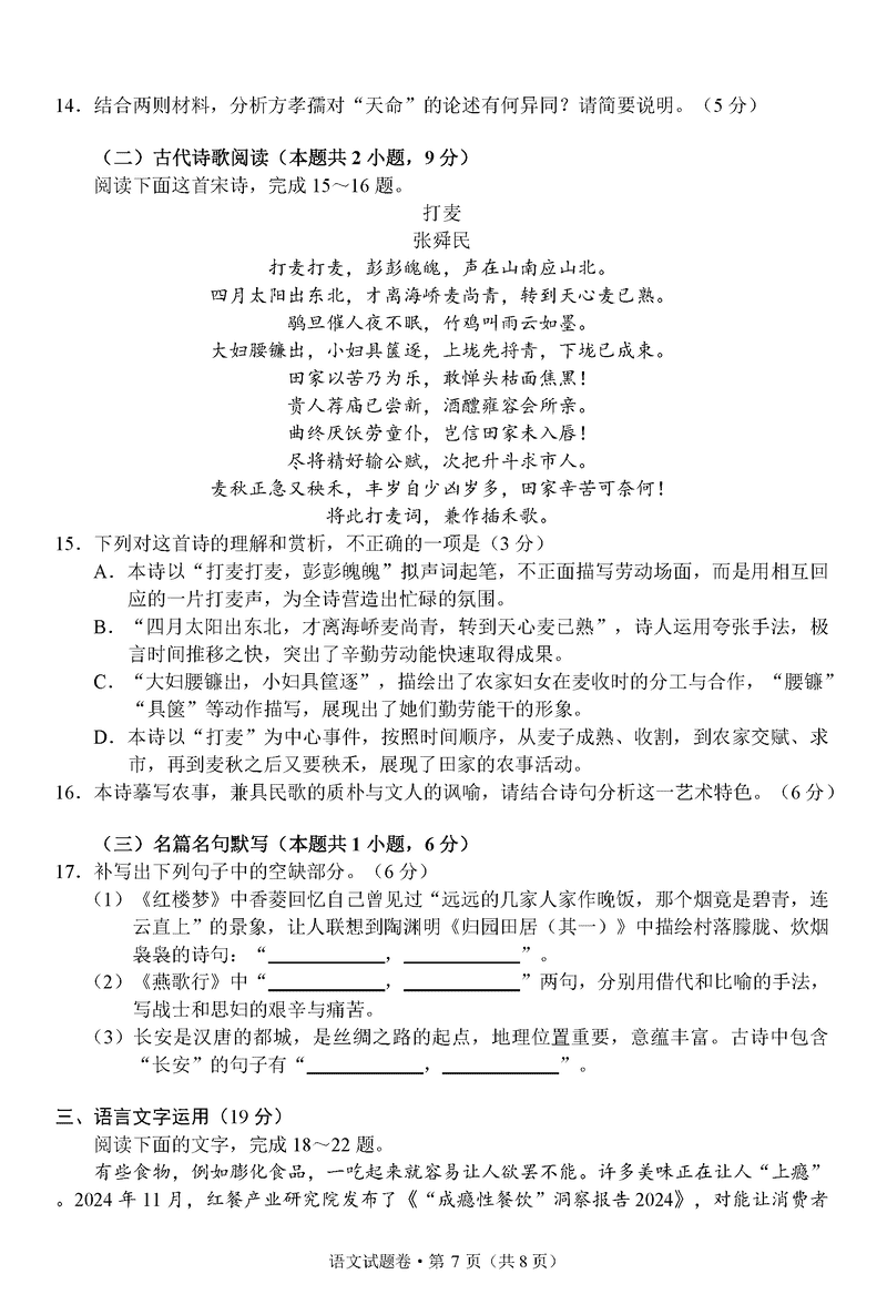 浙江 语文试题