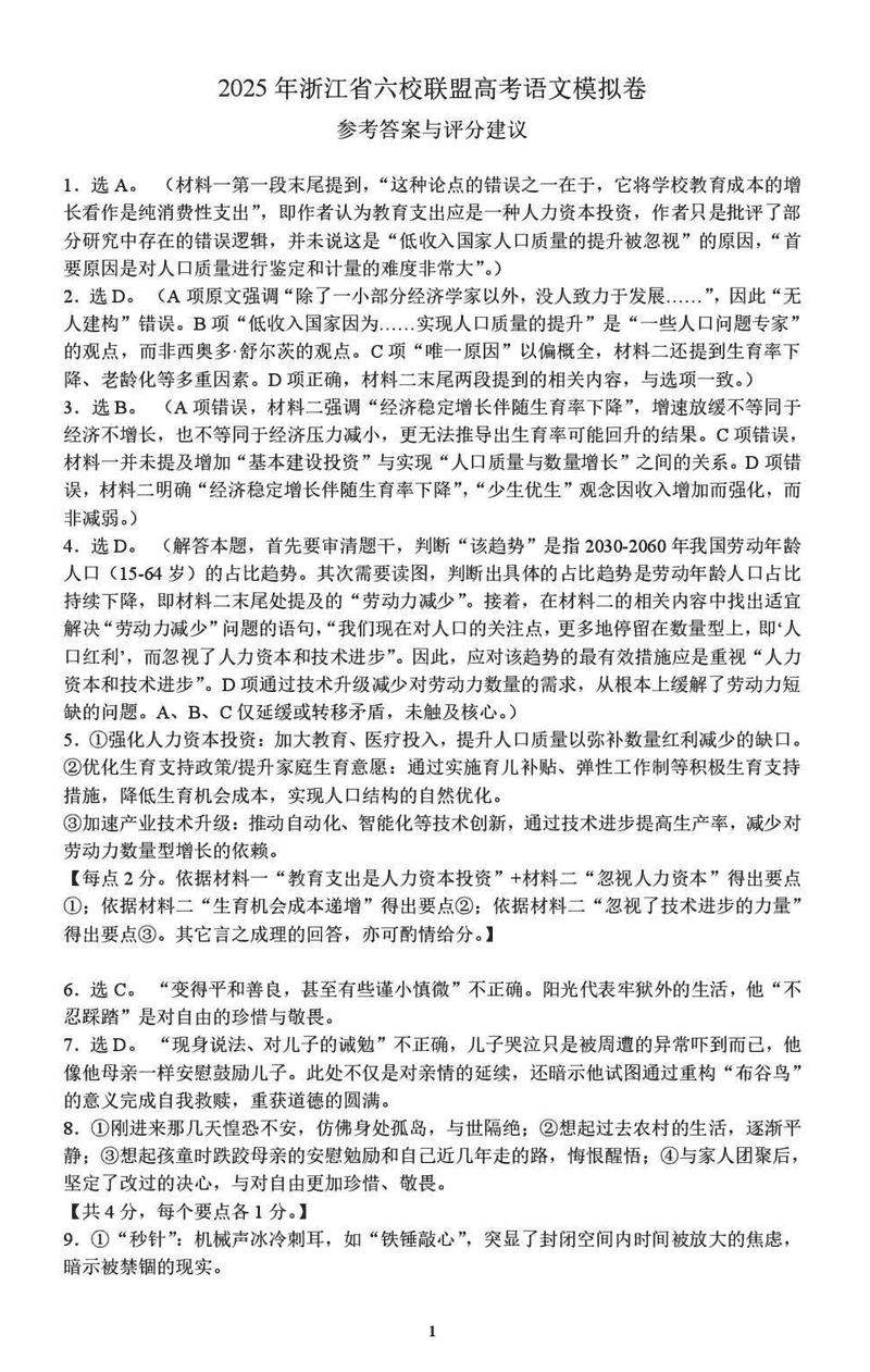浙江省六校(杭二/温中金华一中/绍兴一中/舟山中学/衢州二中)联考2025届高三5月高考模拟语文考试已于近日开考,为方便考生考后及时查看考试情况,查漏补缺、弥补不足,本文整理了试题答案解析相关信息!