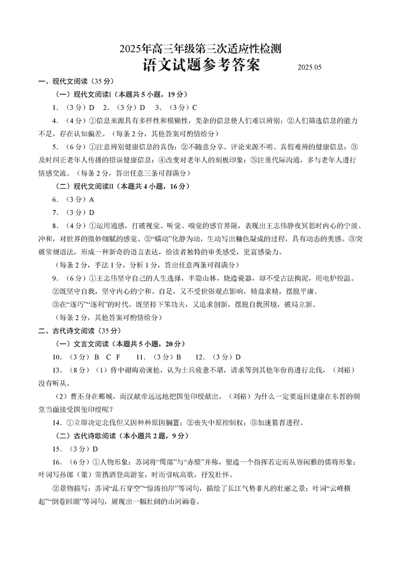 青岛三模2025年高三第三次适应性检测语文考试已于近日开考,为方便考生考后及时查看考试情况,查漏补缺、弥补不足,本文整理了试题答案解析相关信息!