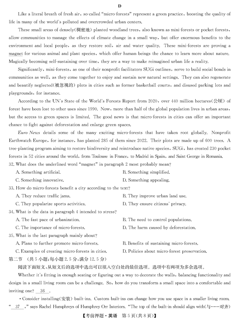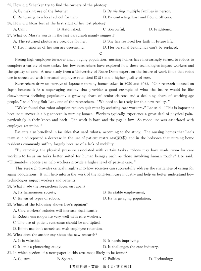 安徽九师联盟2025届高三5月考前押题英语试题及答案