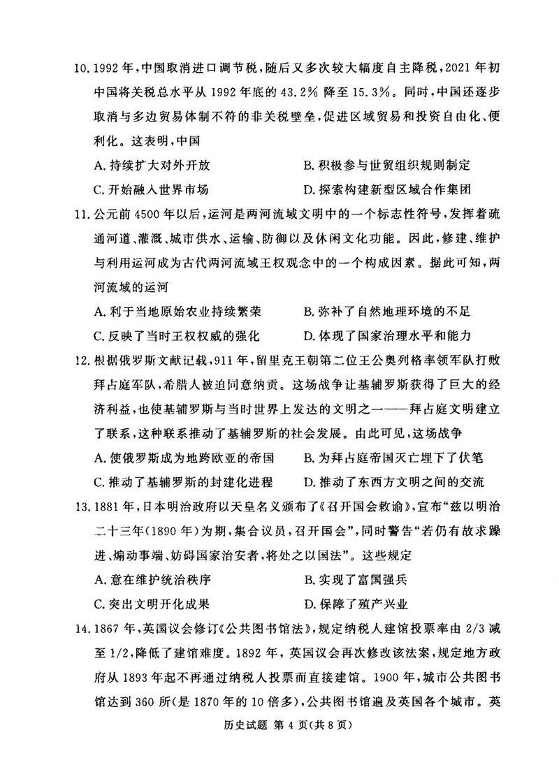 湘豫名校联考2024-2025学年高三第四次模拟历史试题及答案
