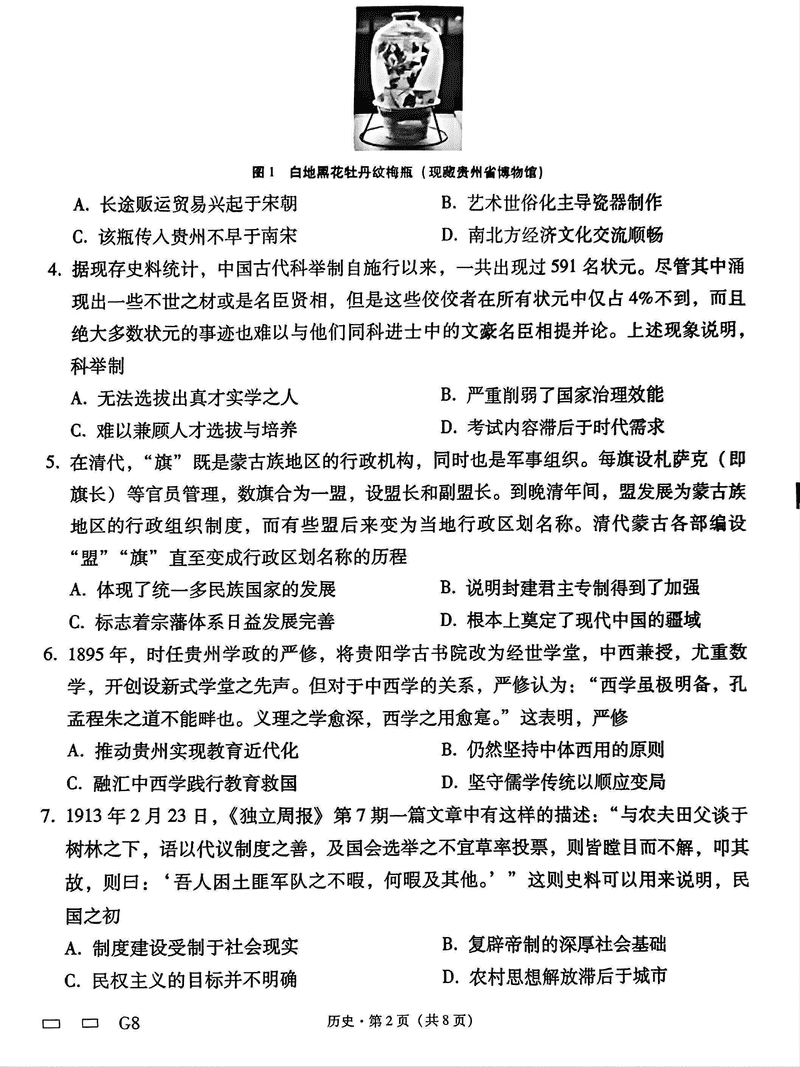 贵阳一中2025届高考适应性月考卷(八)历史考试已于近日开考,为方便考生考后及时查看考试情况,查漏补缺、弥补不足,本文整理了试题答案解析相关信息!
