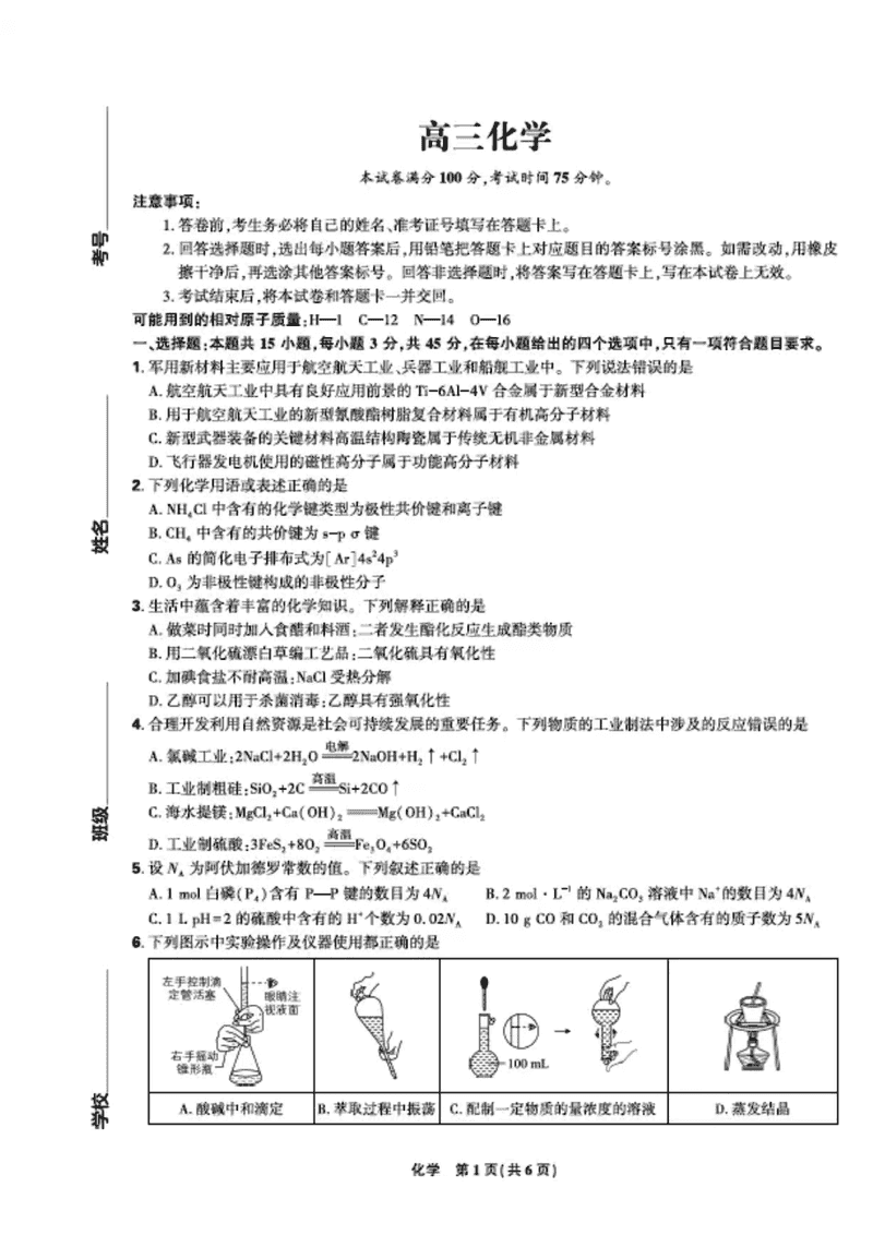 东北三省精准教学联盟2025届高三5月联考化学考试已于近日开考,为方便考生考后及时查看考试情况,查漏补缺、弥补不足,本文整理了试题答案解析相关信息!