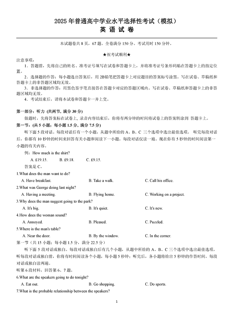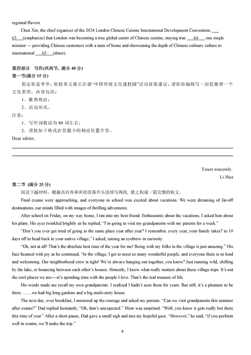 沙市中学2025届高三下学期5月高考模拟英语试题及答案