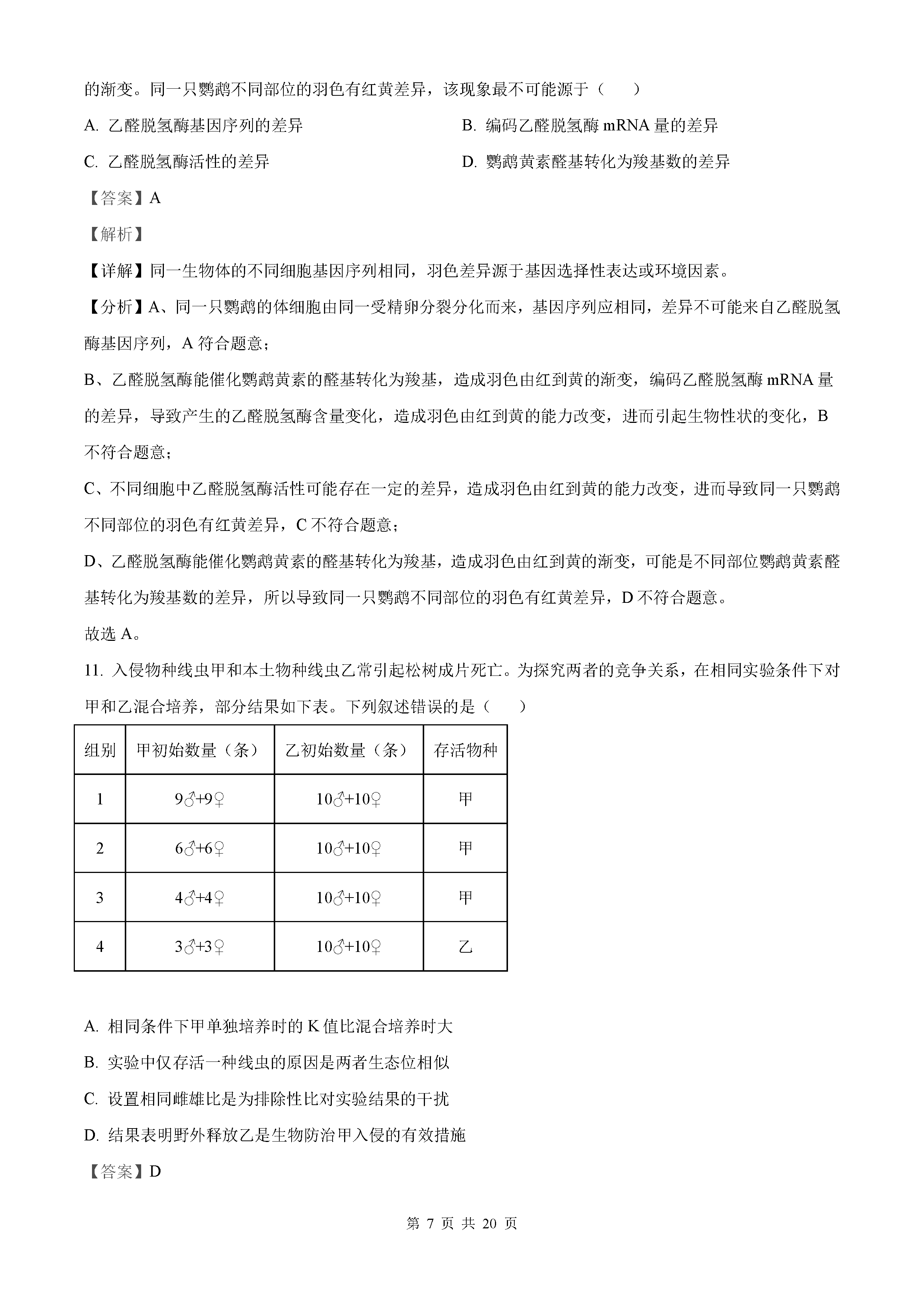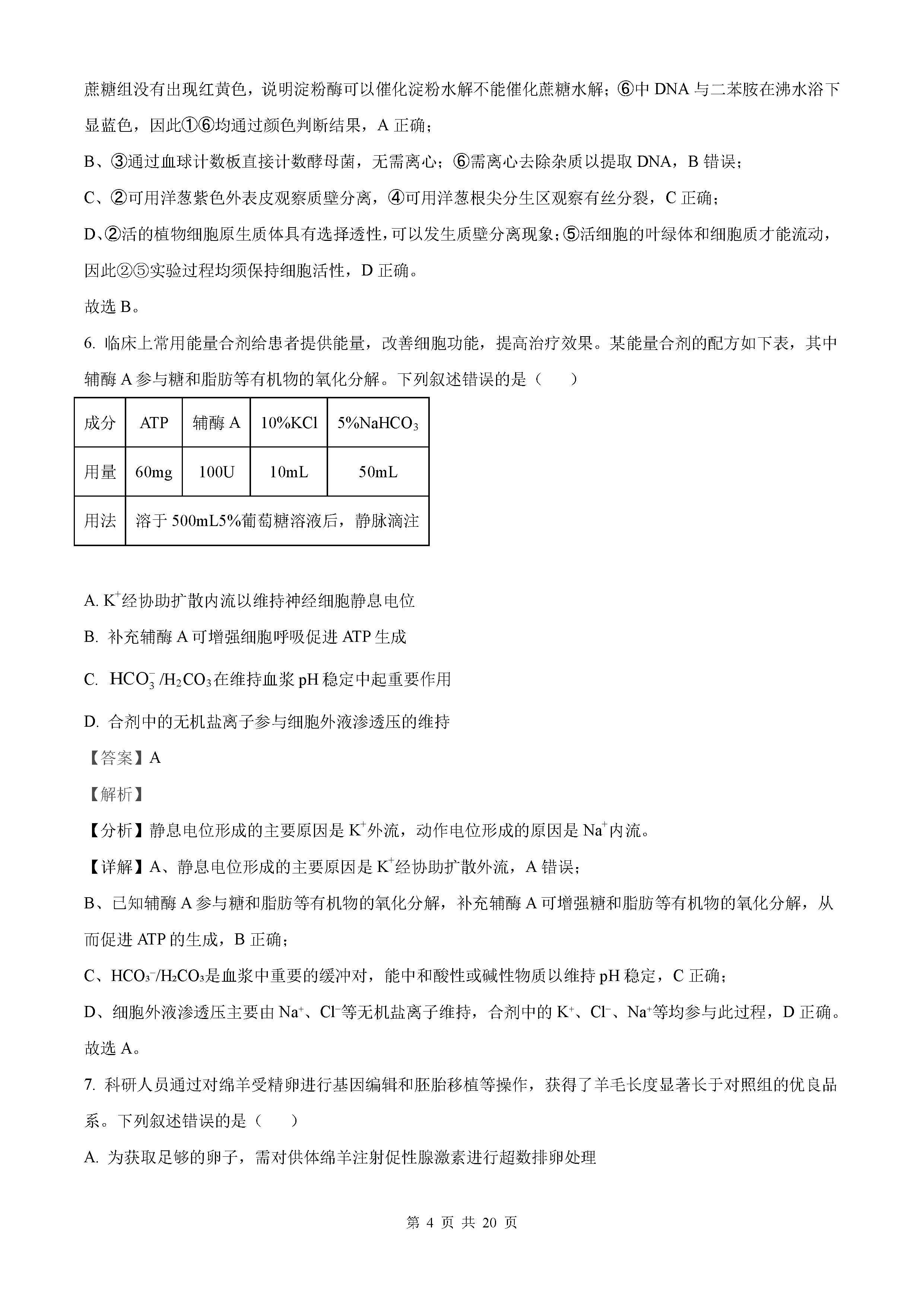 2021年全国乙卷理综真题答案解析