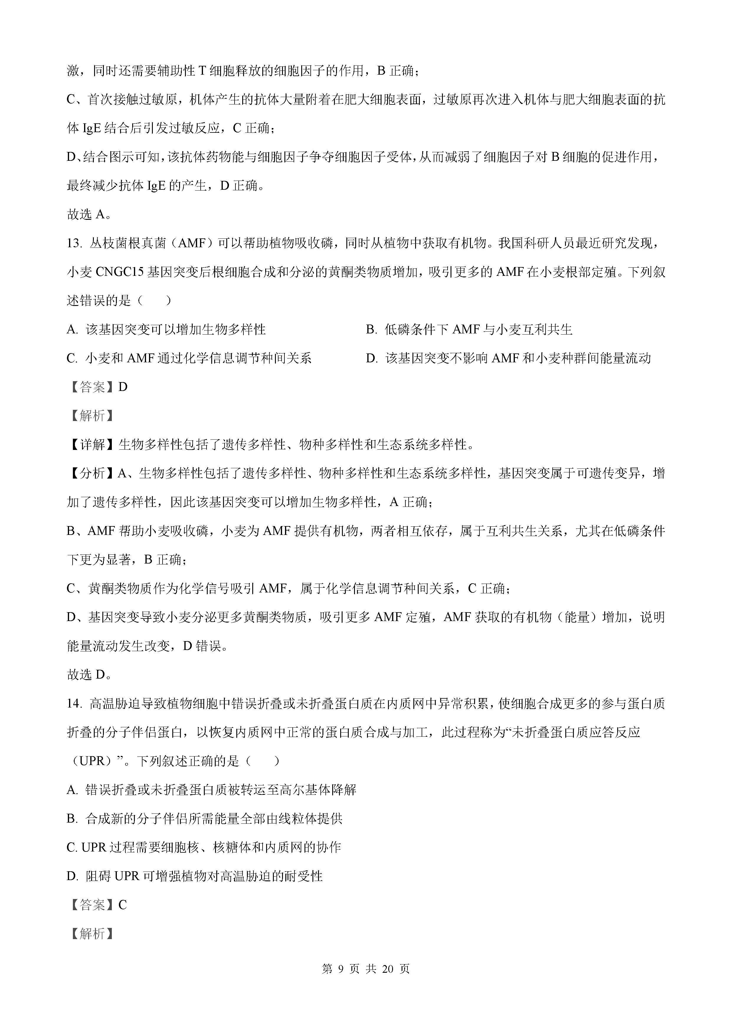 2025年山东高考生物试题及答案解析