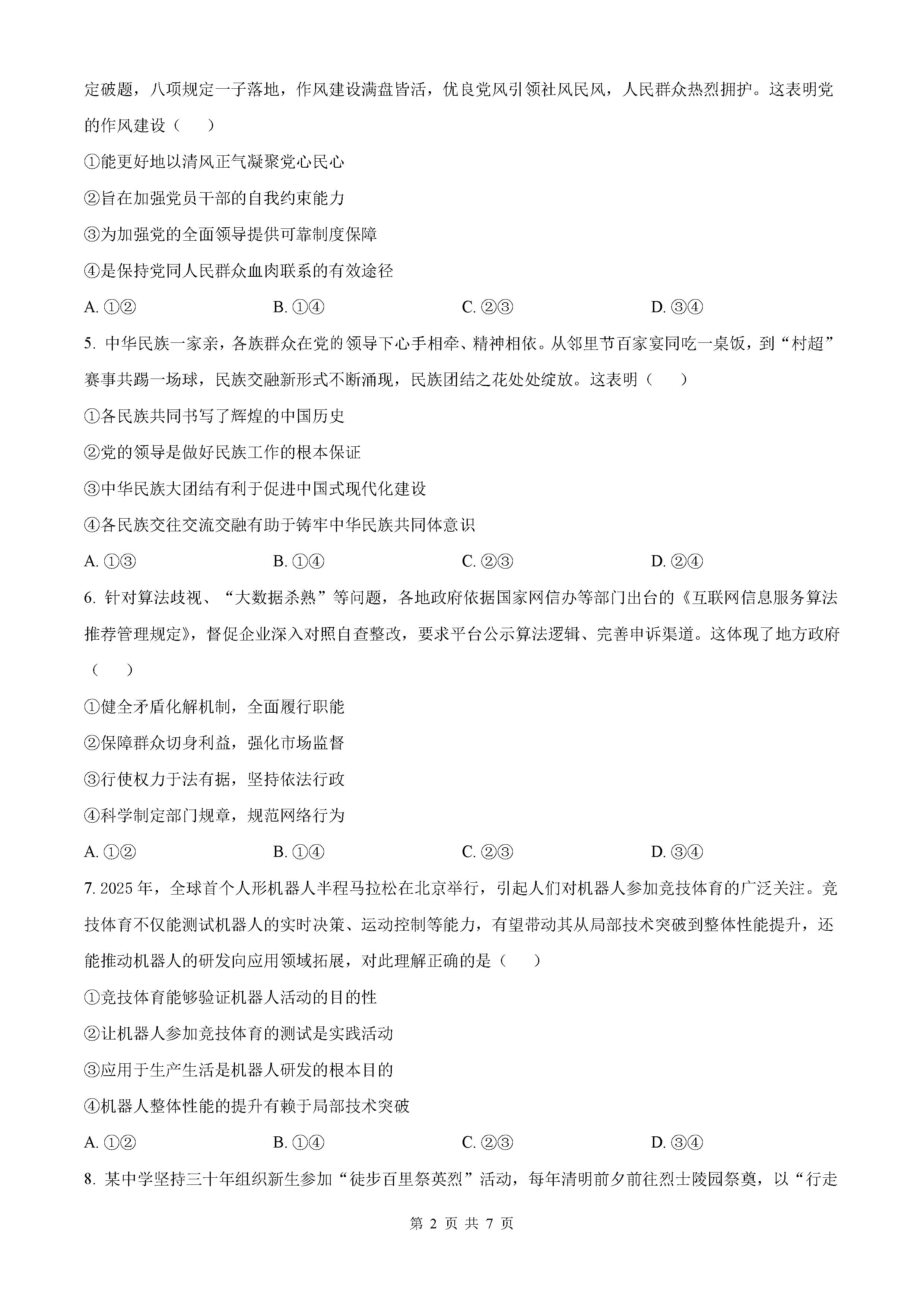 2025年陕西青海山西宁夏四省高考政治试题及答案解析