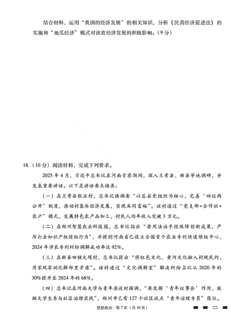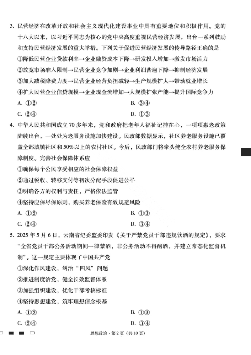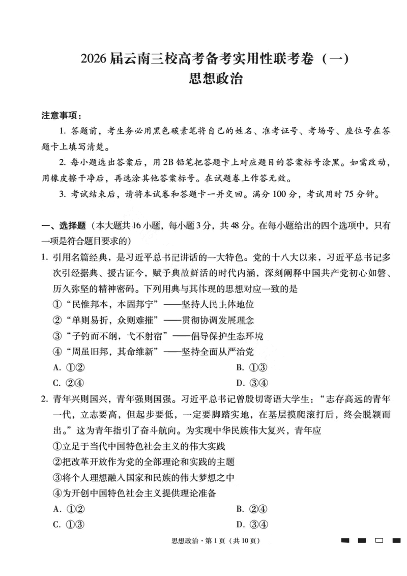 2026届云南三校高考备考实用性联考试卷(一)政治试题及答案