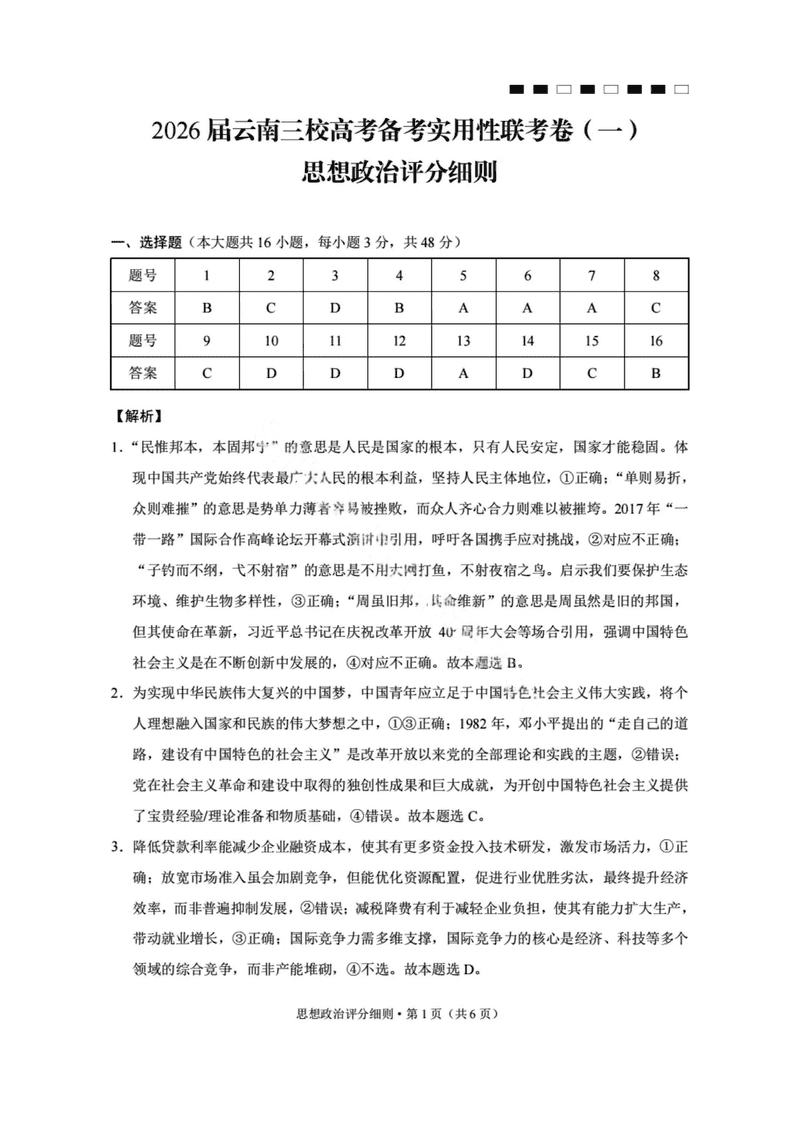 2026届云南三校高考备考实用性联考试卷(一)政治考试已于近日开考,为方便考生考后及时查看考试情况,查漏补缺、弥补不足,本文整理了试题答案解析相关信息!