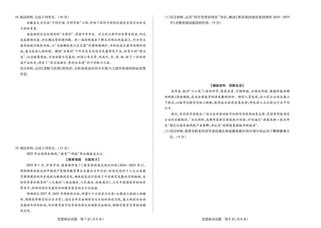 河南天一大联考2025年高二下学期期末学业质量监测政治试题及答案 时间:2025-06-19 河南 高中政治 河南天一大联考2025年高二下学期期末学业质量监测政治考试已于近日开考,为方便考生考后及时查看考试情况,查漏补缺、弥补不足,本文整理了试题答案解析相关信息! 政治试题及答案解析