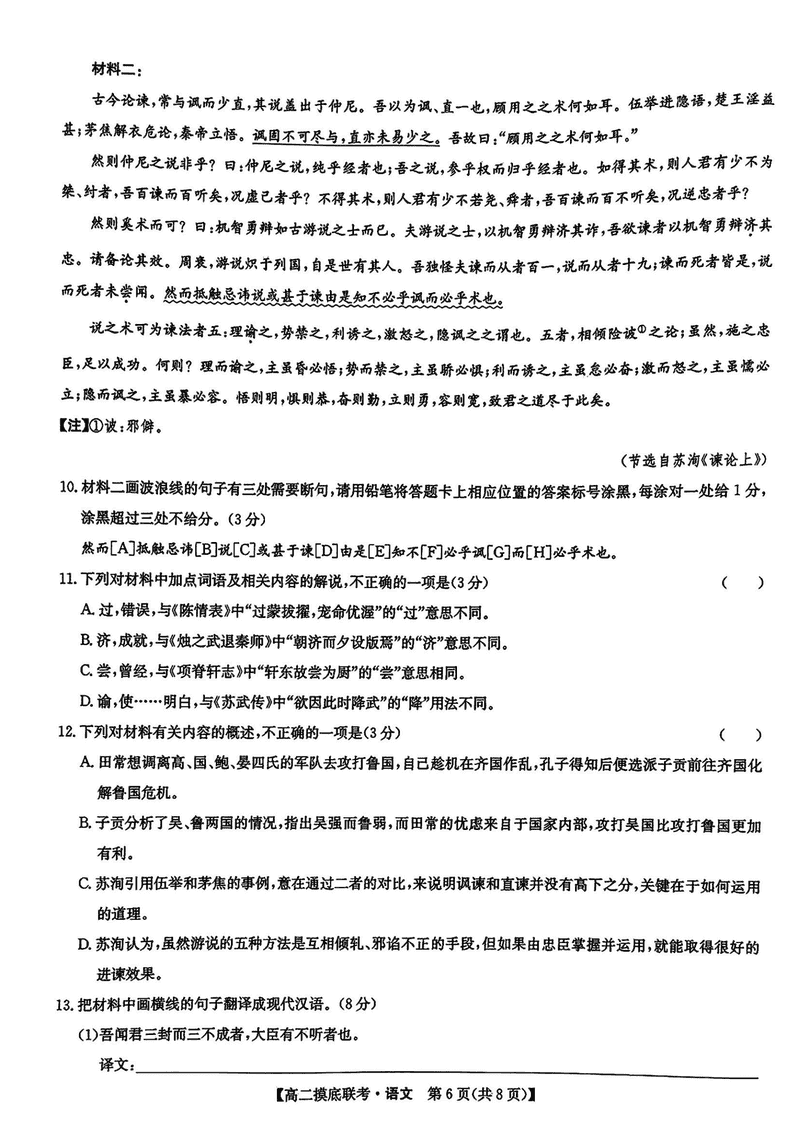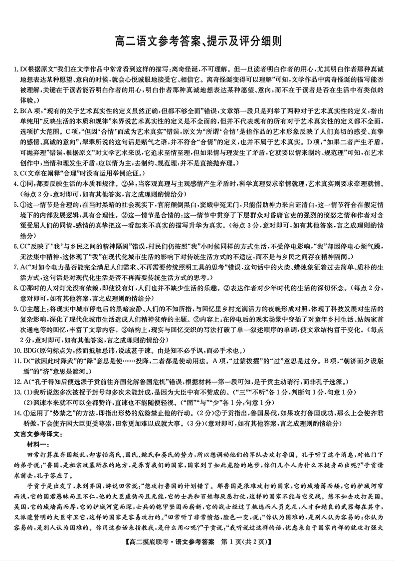 九师联盟2024-2025学年高二下学期6月摸底联考语文试题及答案 时间:2025-06-19 高中语文 九师联盟2024-2025学年高二下学期6月摸底联考语文考试已于近日开考,为方便考生考后及时查看考试情况,查漏补缺、弥补不足,本文整理了试题答案解析相关信息! 语文试题及答案解析
