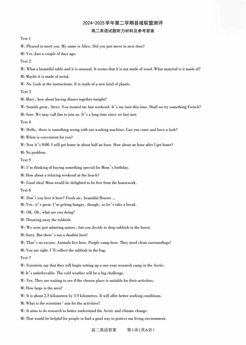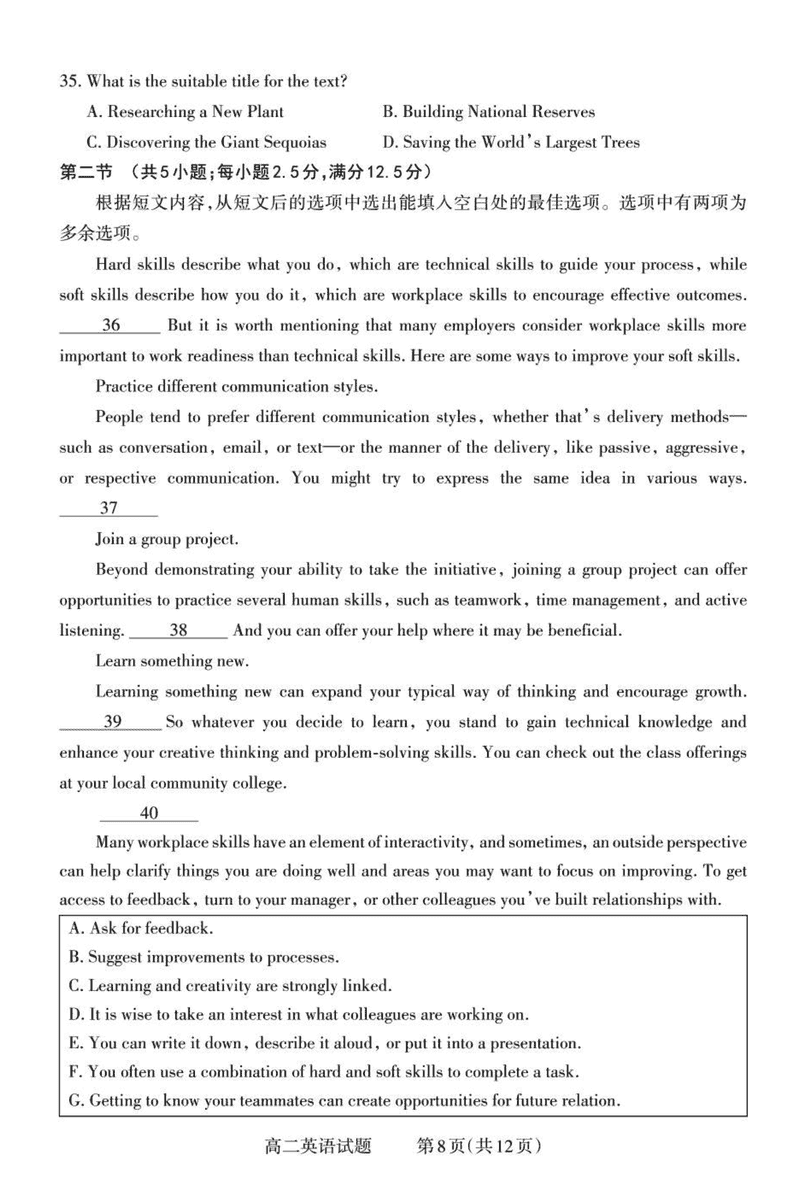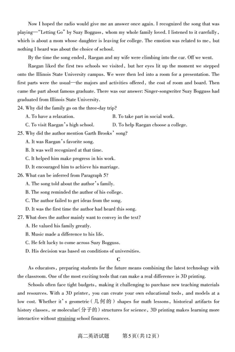 山西省县域联盟2024-2025学年高二下学期5月月考英语试题及答案 时间:2025-06-19 山西 高中英语 山西省县域联盟2024-2025学年高二下学期5月月考英语考试已于近日开考,为方便考生考后及时查看考试情况,查漏补缺、弥补不足,本文整理了试题答案解析相关信息! 英语试题及答案解析