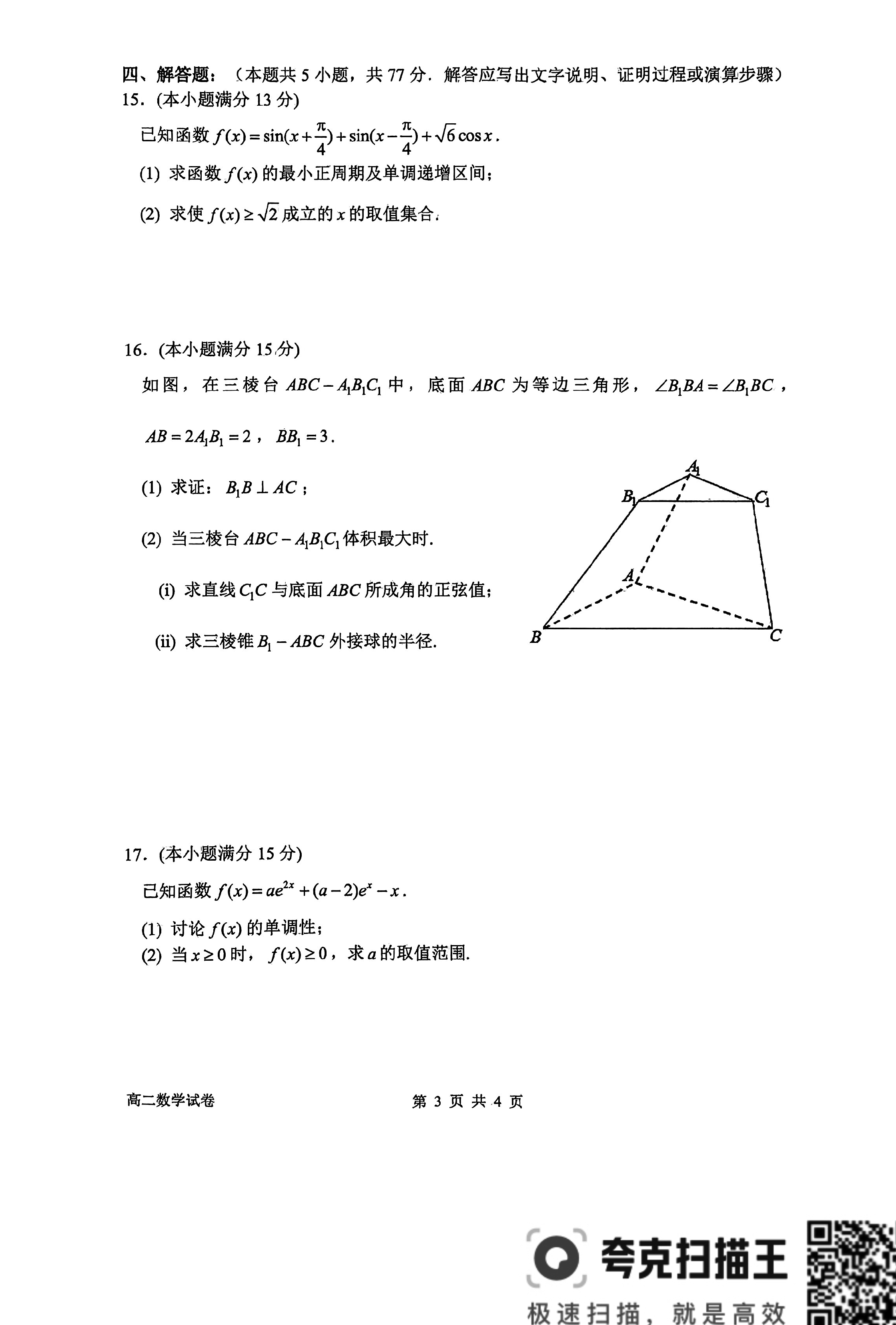 衢州市2025年6月高二下学期教学质量检测数学试题及答案 时间:2025-06-22 浙江 高中数学 浙江省衢州市2025年6月高二下学期教学质量检测数学考试已于近日开考,为方便考生考后及时查看考试情况,查漏补缺、弥补不足,本文整理了试题答案解析相关信息! 数学试题及答案解析