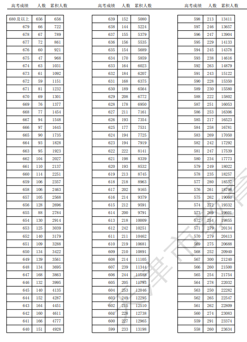 2025天津高考成绩一分一段表最新公布