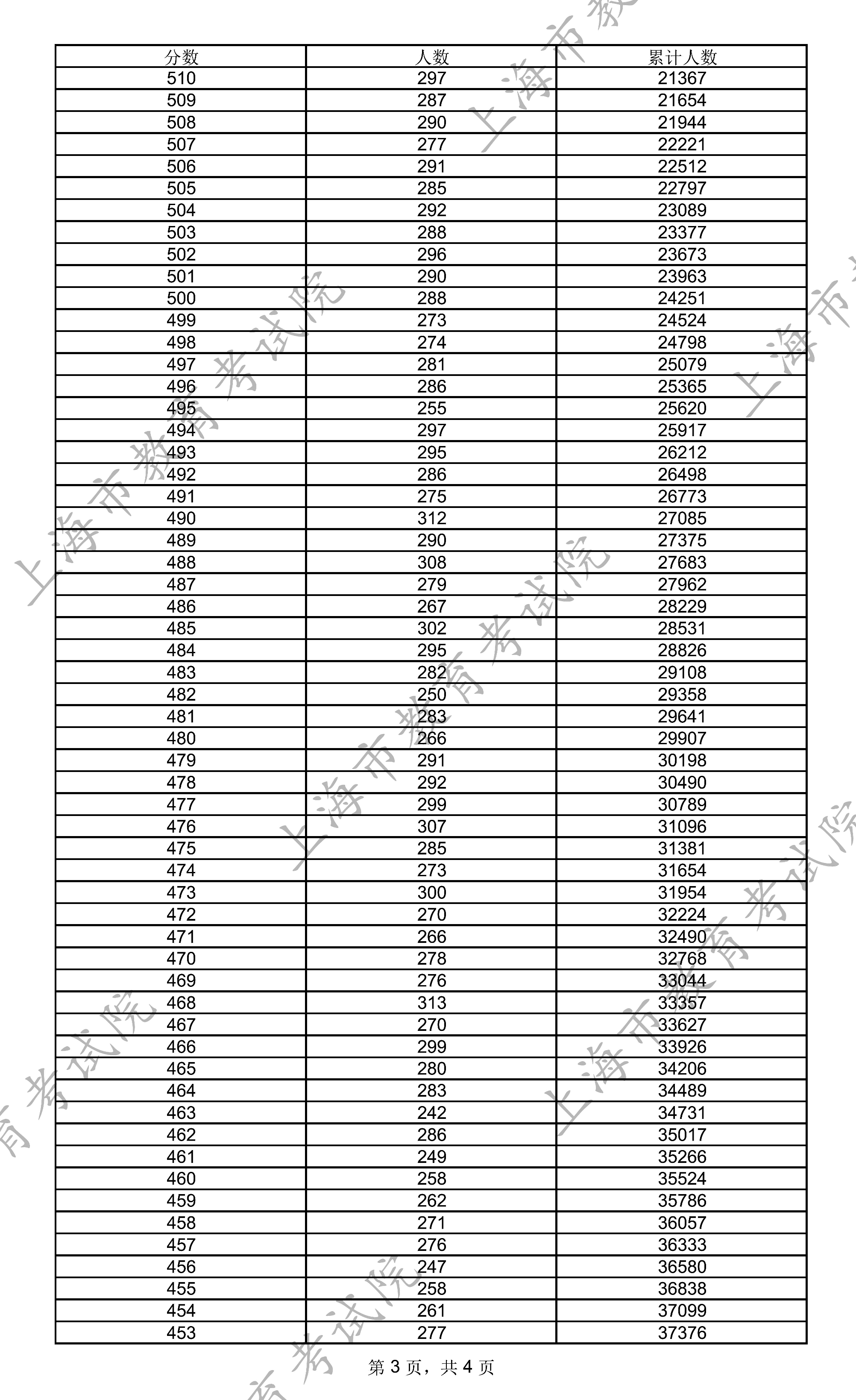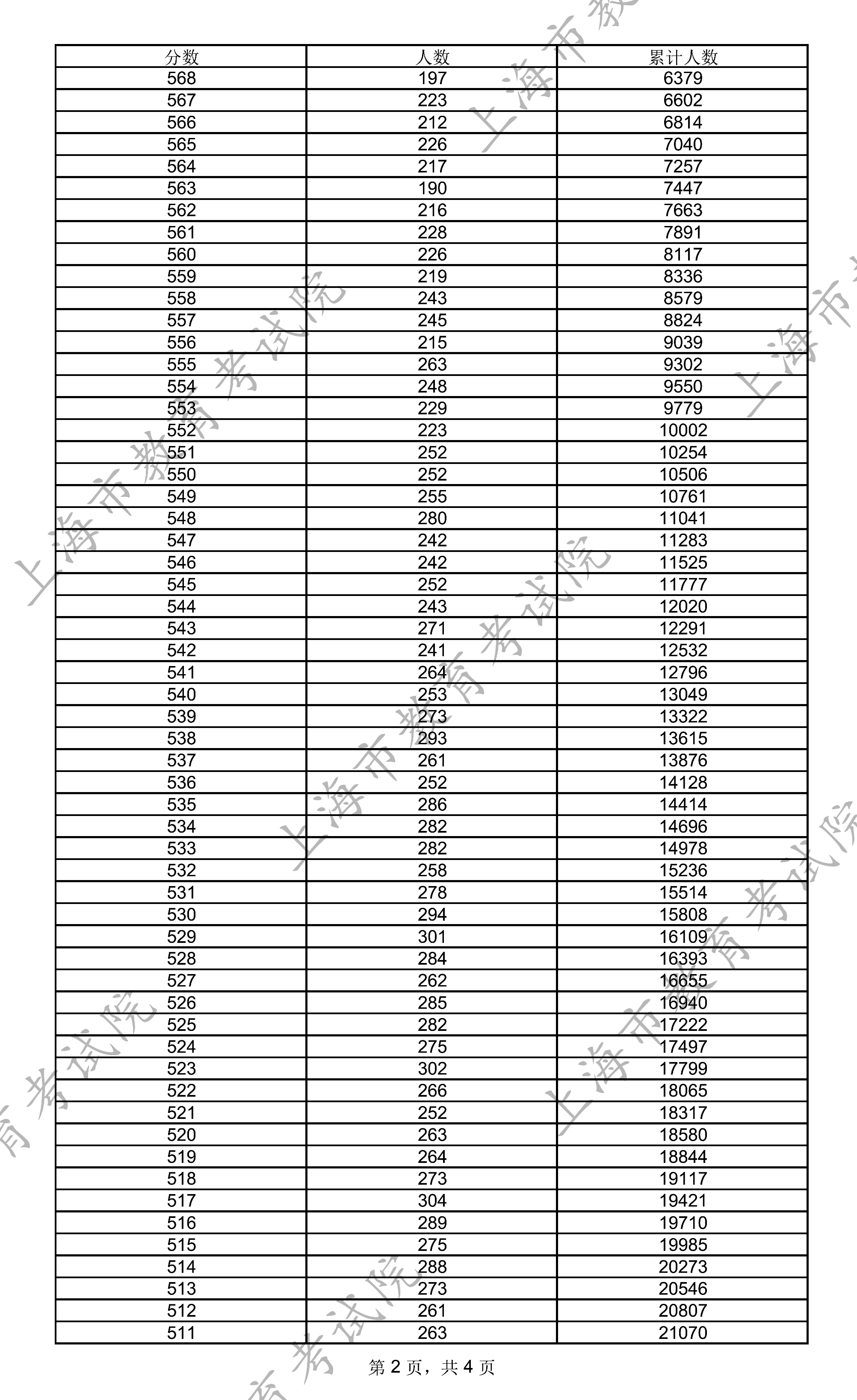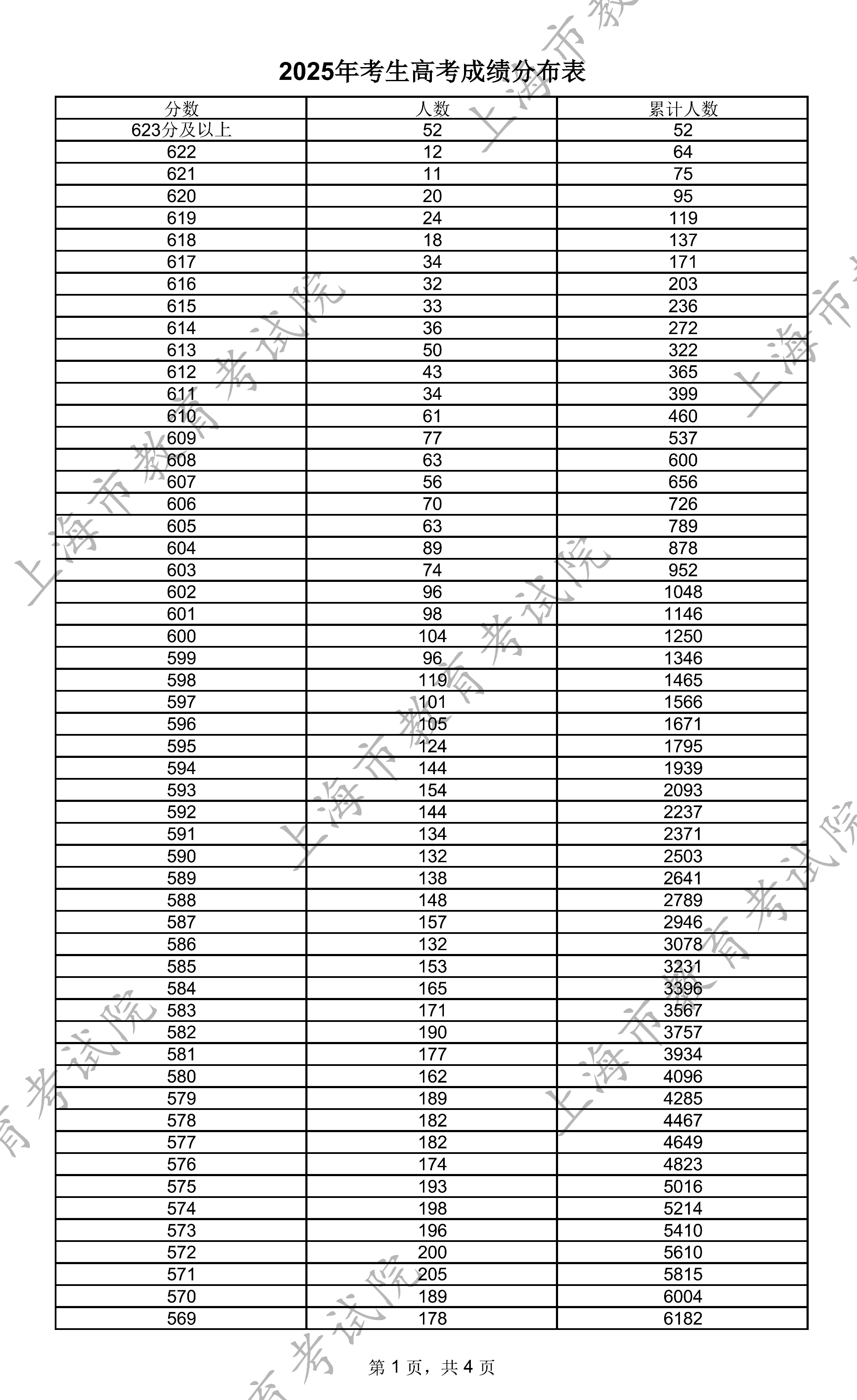 上海2025年高考一分一段统计表及位次排名
