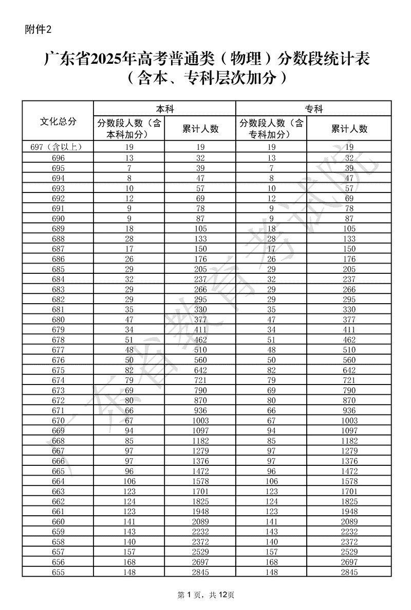 2025广东高考成绩一分一段表出炉 最新位次排名
