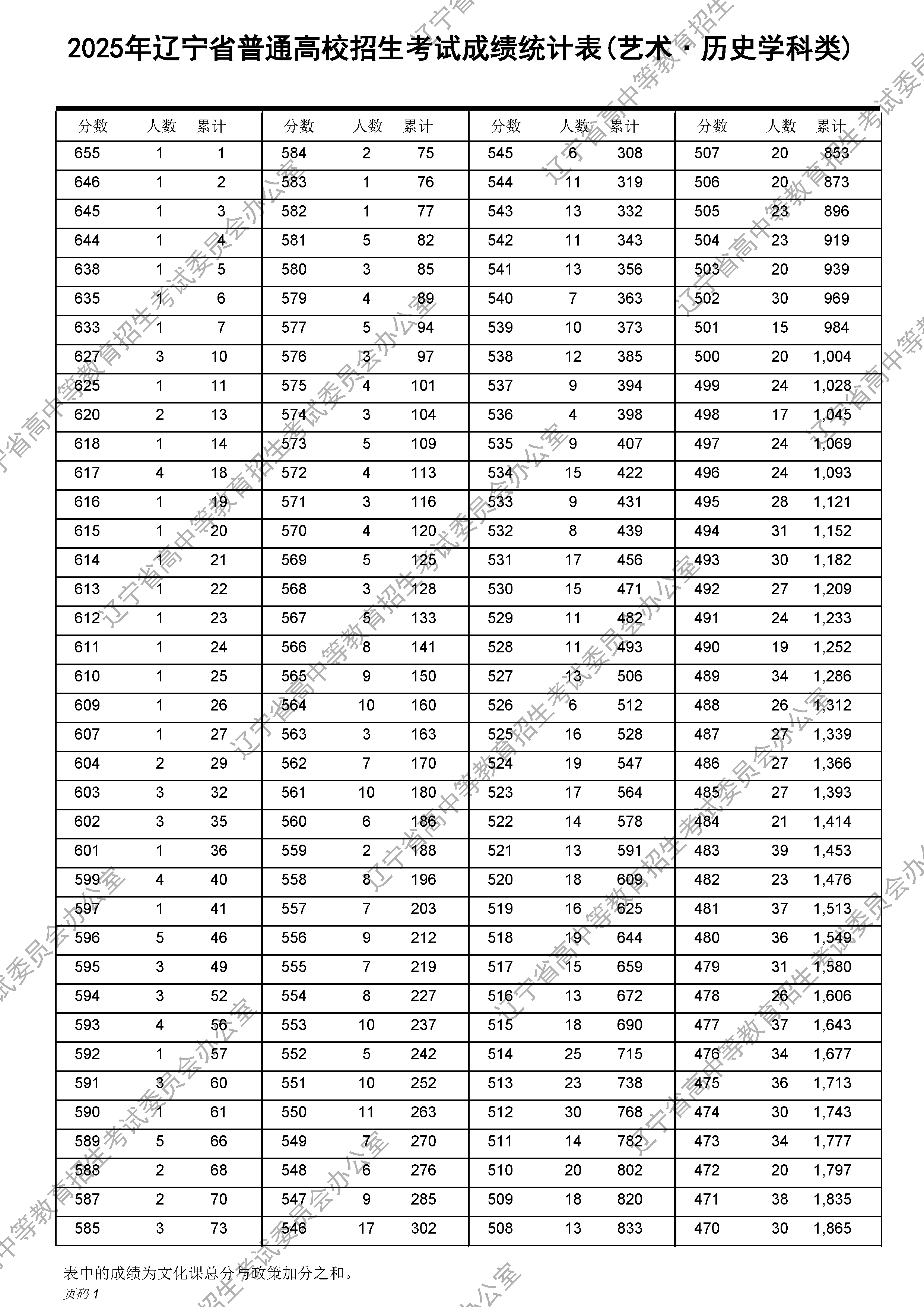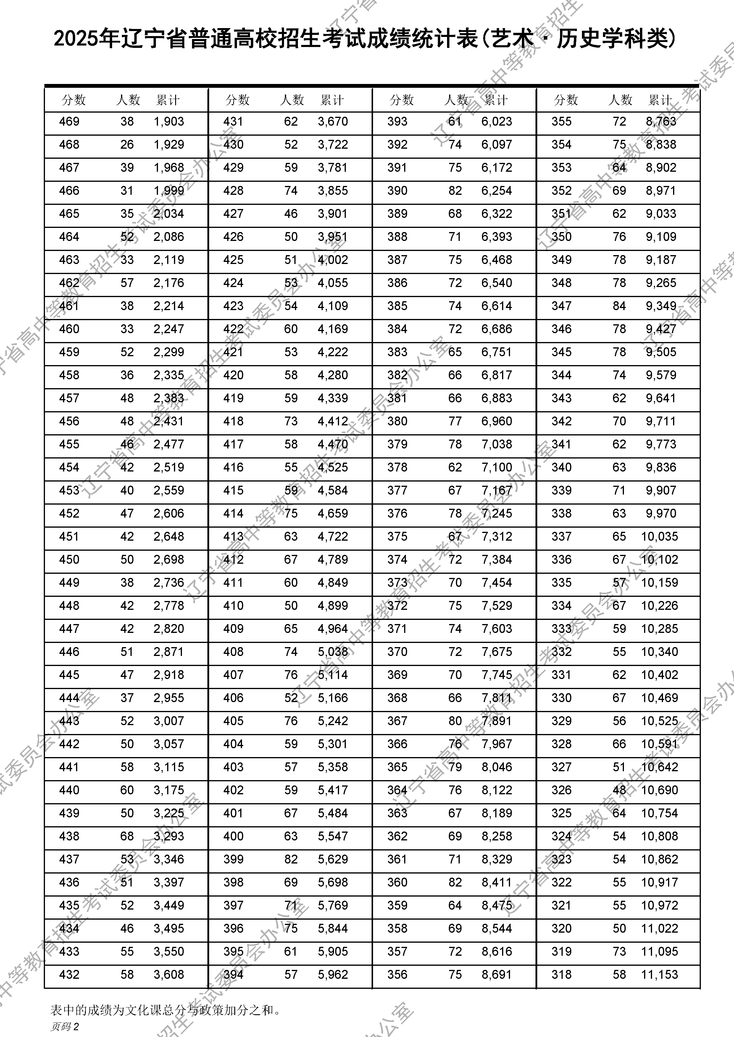2025年辽宁高考艺术类成绩一分一段表及位次排名(历史学科类)