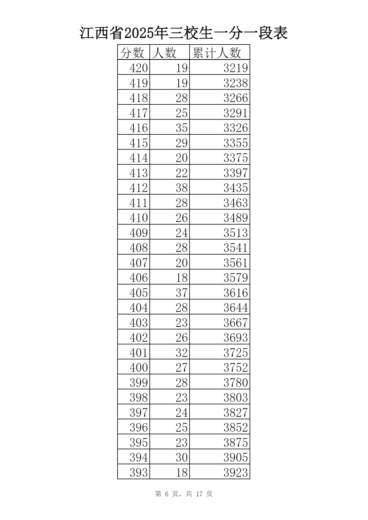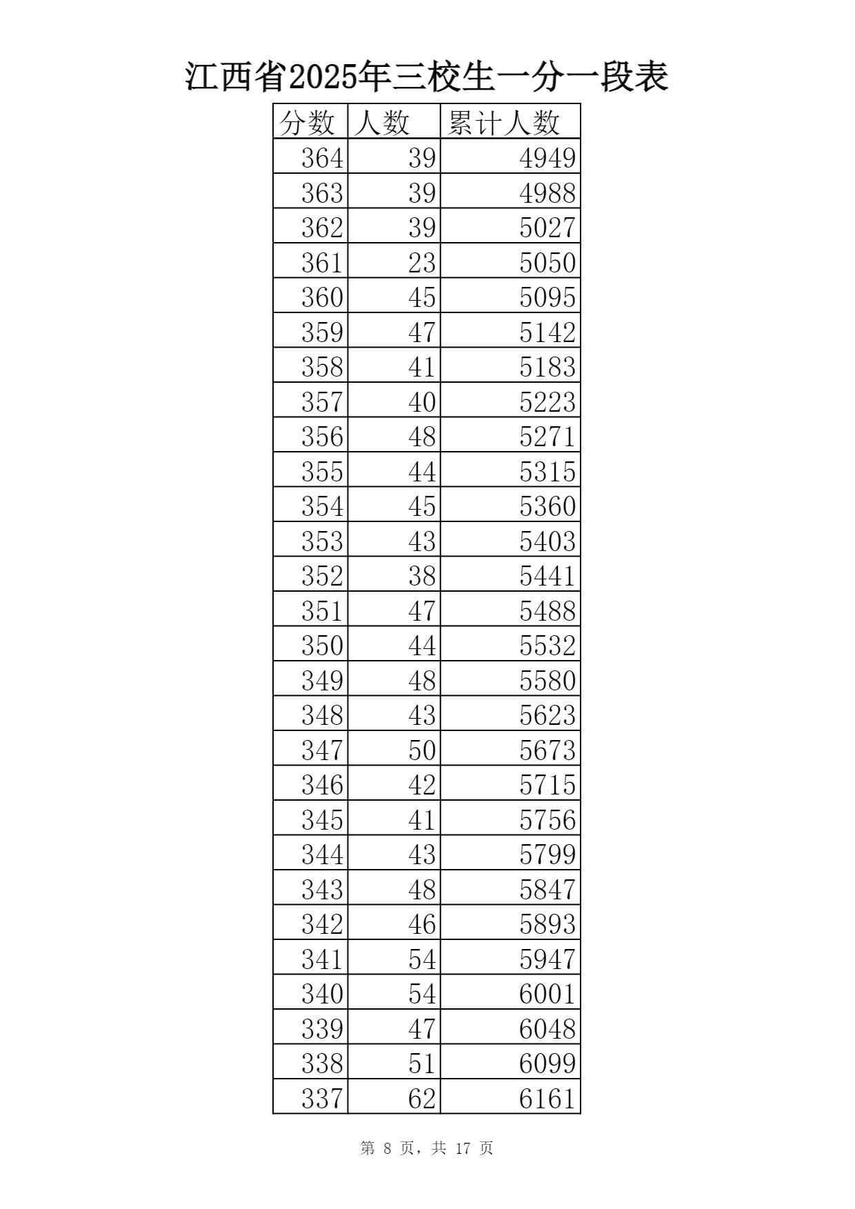 2025江西三校生一分一段表最新出炉 高考成绩分布表