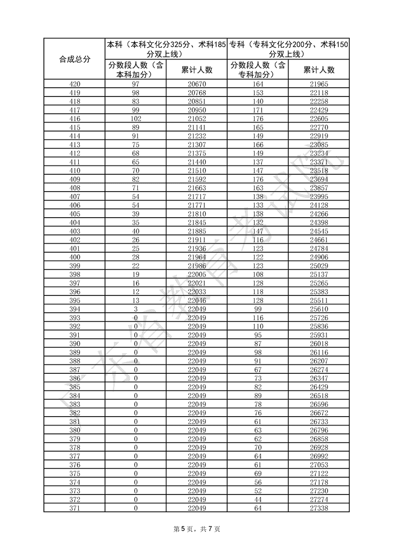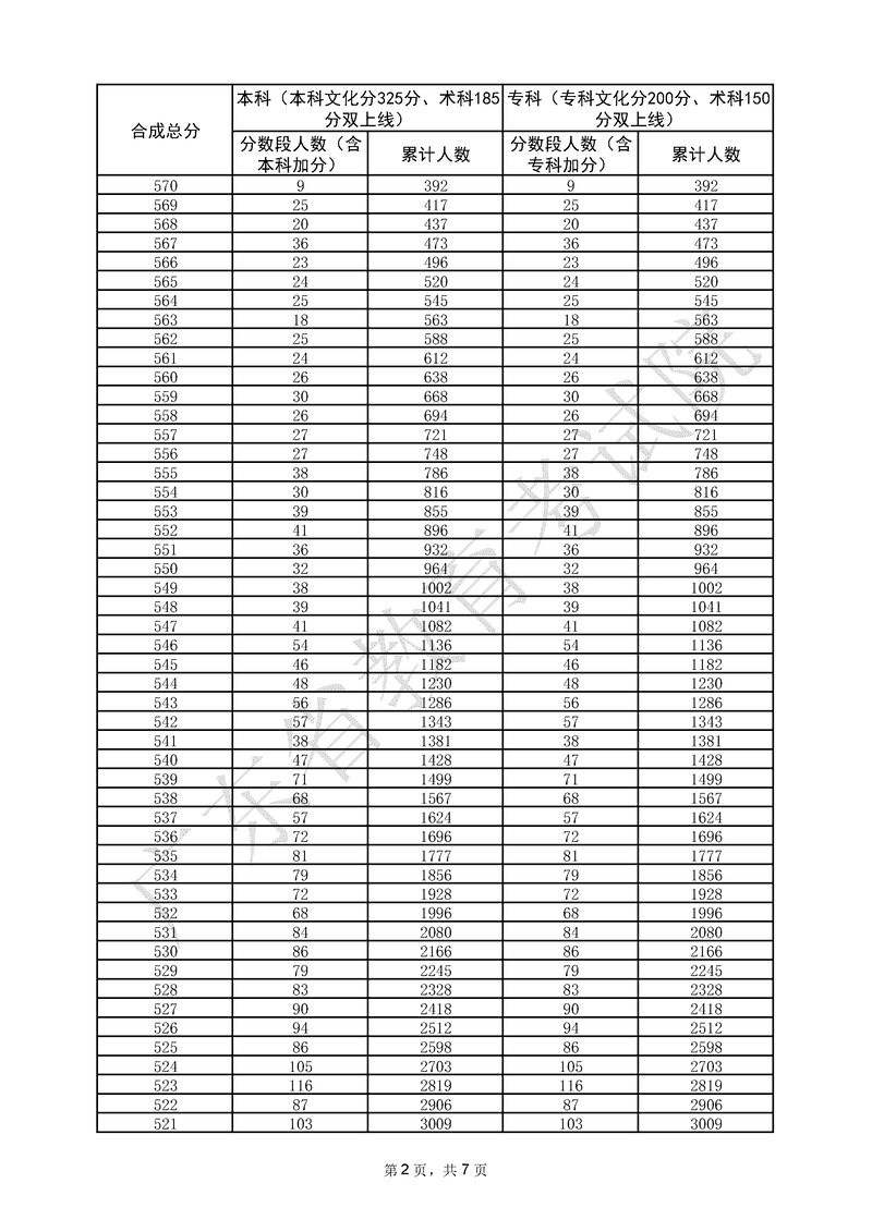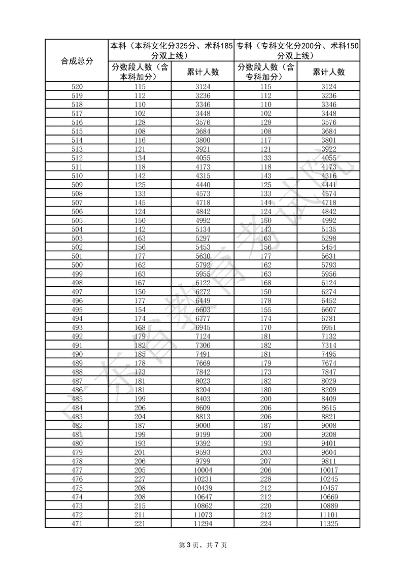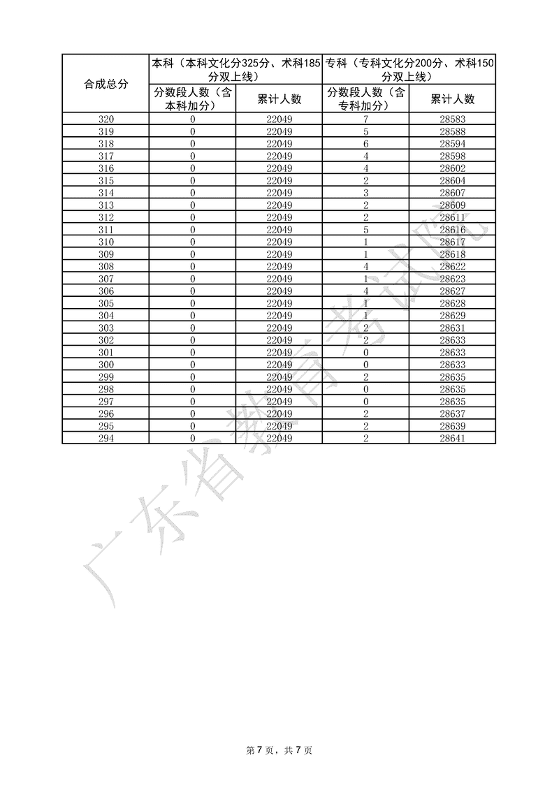 广东省2025年普通高考美术与设计类总分一分一段统计表(含本、专科层次加分)