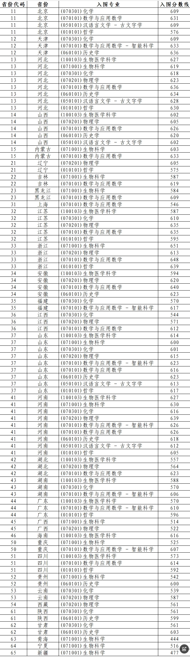 以下是山东大学强基计划2025年入围分数线: