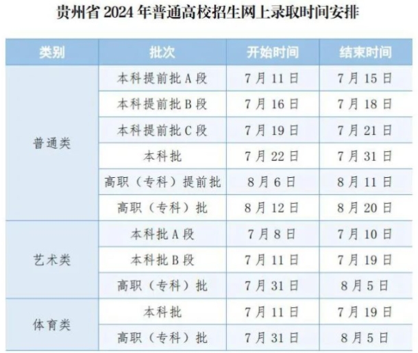对于录取结果,贵州考生首先要清楚自己属于哪个批次,以及这个批次的录取时间安排和征集志愿时间。